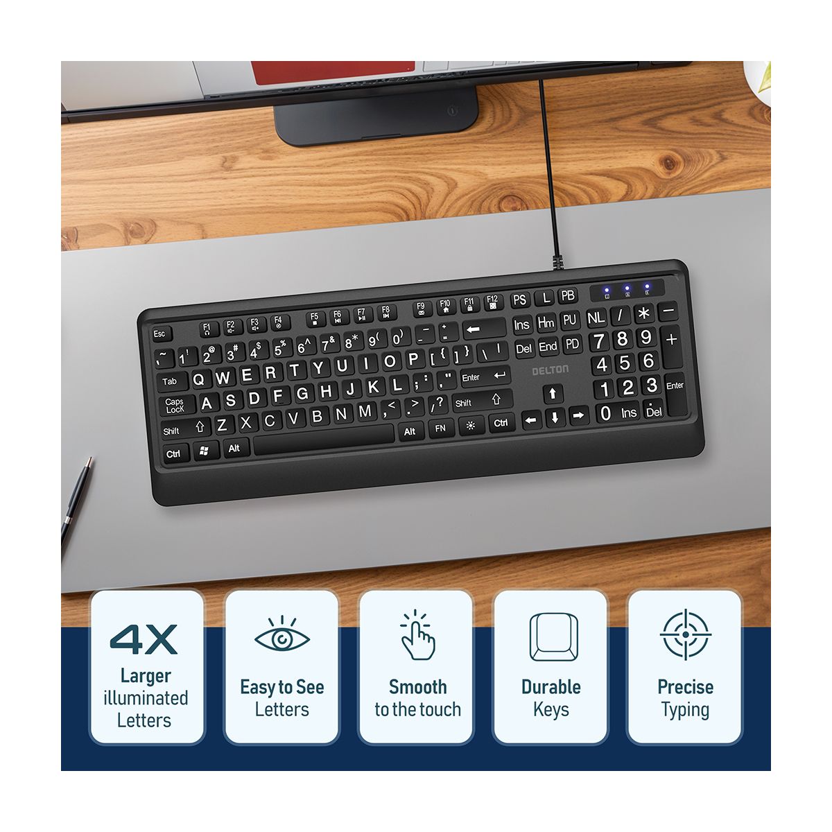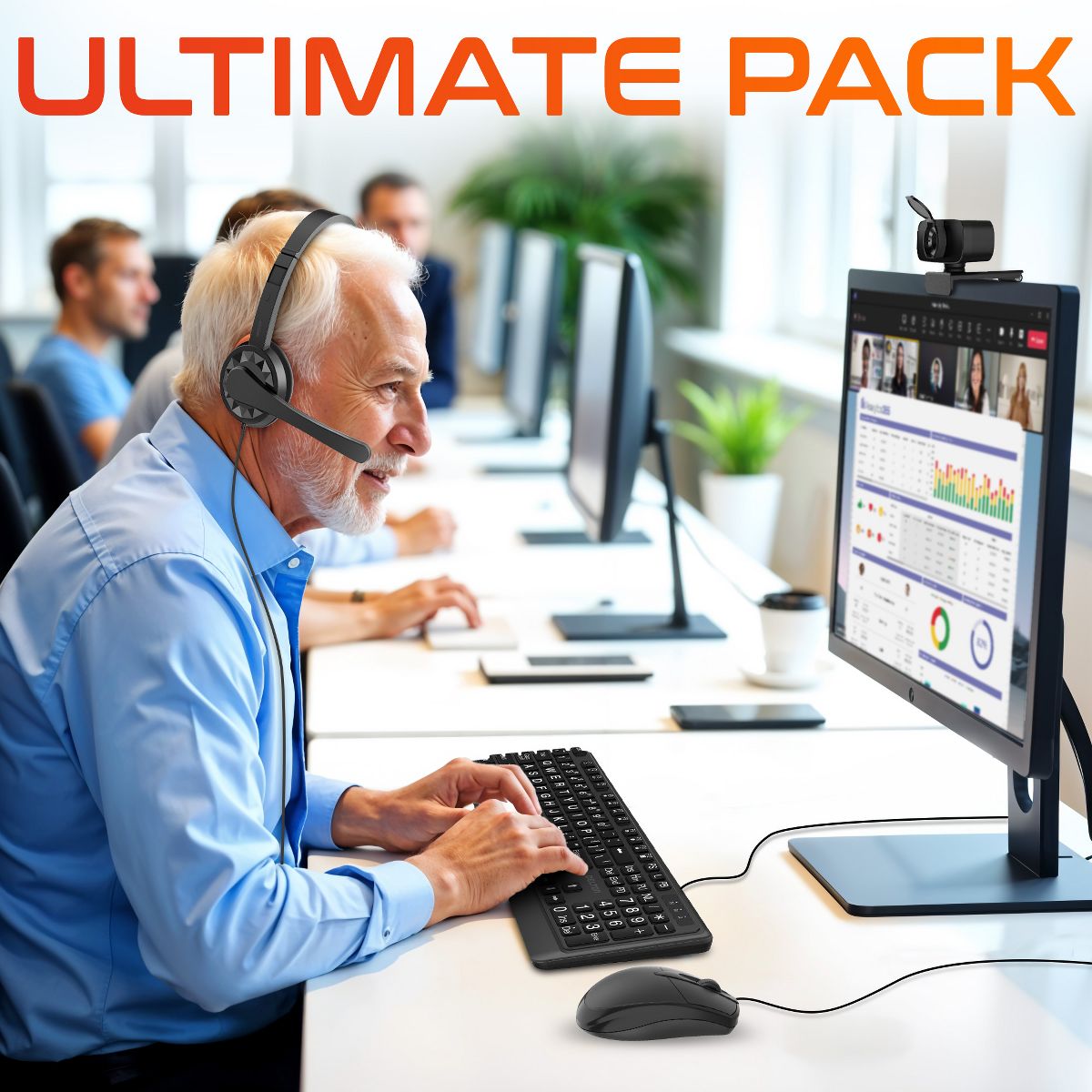 Delton Work Anywhere 12Y USB Headset, 1080p Webcam, Big-Key USB Keyboard & Mouse Bundle, Black