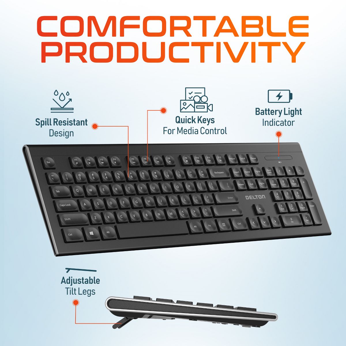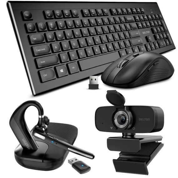 Delton Work Anywhere 90X Wireless Noise Canceling Bluetooth Computer Headset Kit with 1080p Webcam, Wireless Keyboard & Mouse, Black