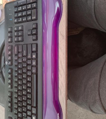 Soft gel provides cushioned comfort while performing computer functions. Stain- and water-resistant surface is easy to clean. Gel helps displace pressure points and maintain a neutral wrist position. Nonslip rubber backing keeps pad in place. Wrist Filling Material: Gel; Mouse Pad/Wrist Rest Type: Keyboard Wrist Rest; Color(s): Purple; Theme: Solid Color.