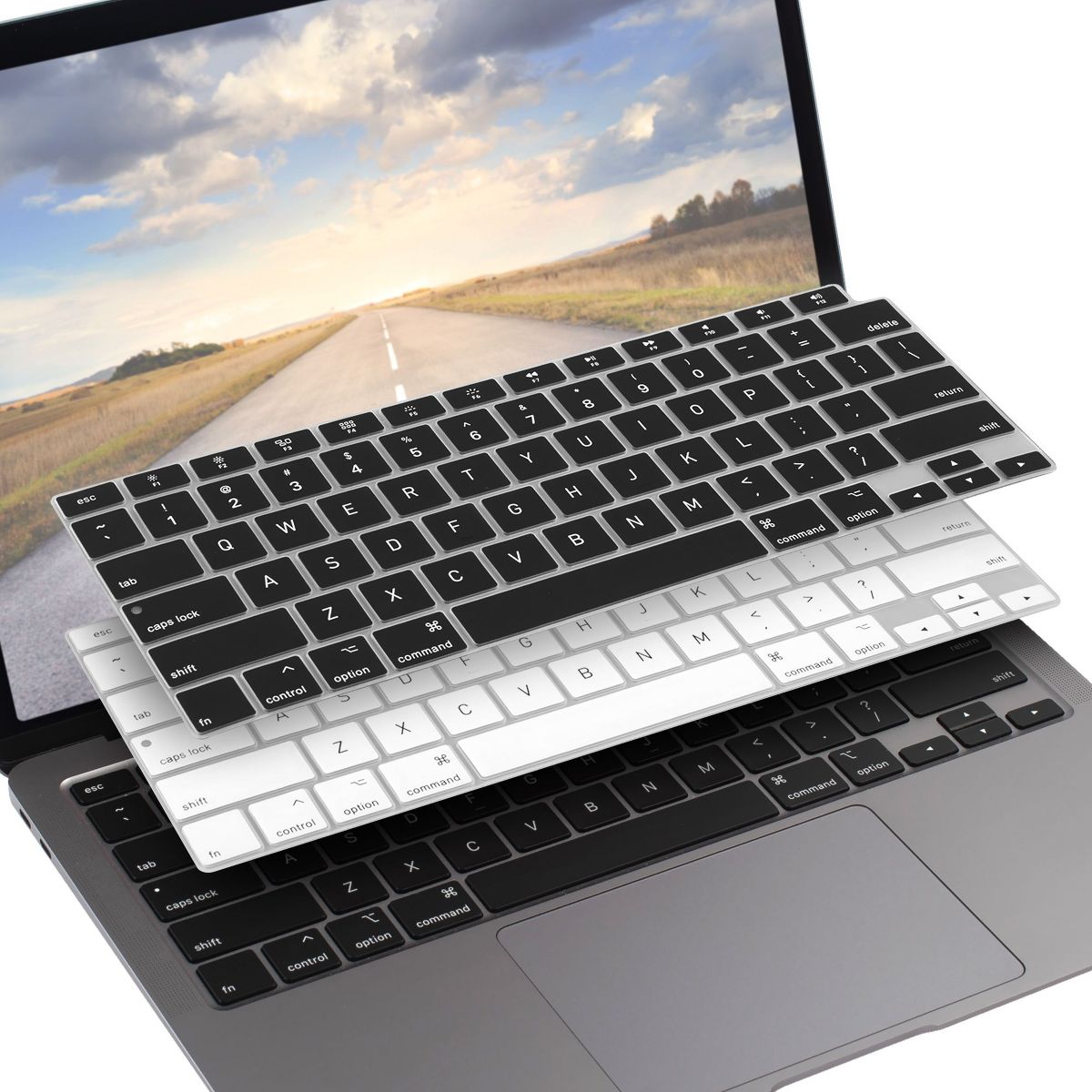 Insten 2 Pack Keyboard Cover Protector Compatible with 2020 Macbook Air 13", Ultra Thin Silicone Skin, Tactile Feeling, Anti-Dust, Black & White