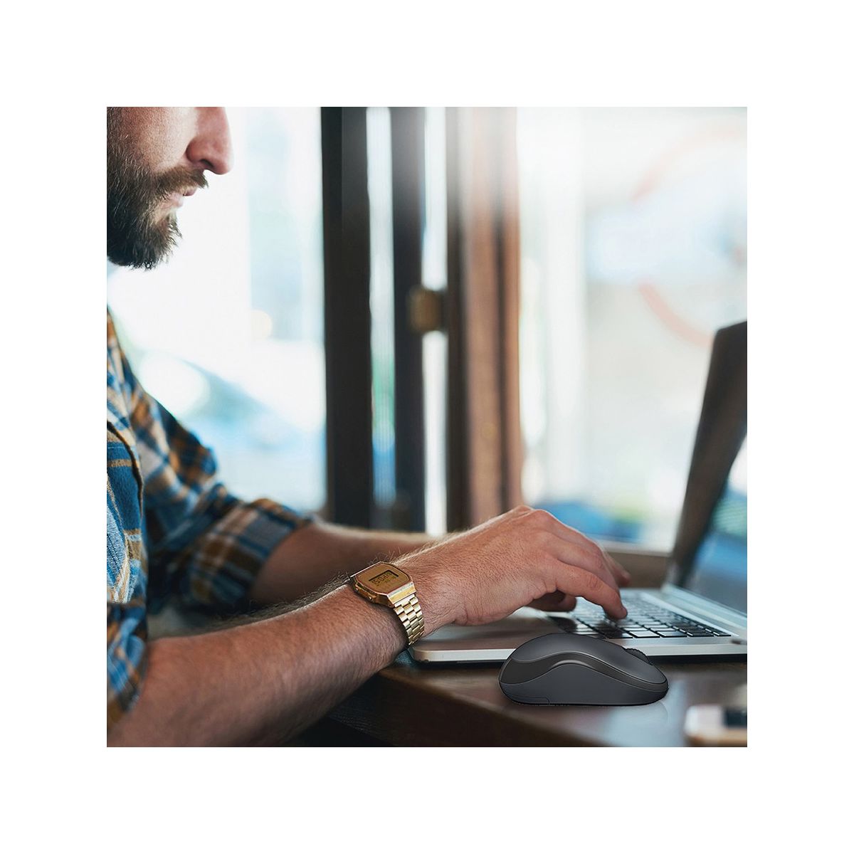 With the same click feel and 90 percent noise reduction compared to classic mice, M220 SILENT offers a quiet user experience. It has a long-lasting 18-month battery life with auto-sleep and a powerful 33-ft wireless range. Simply plug the tiny USB receiver and use with Windows, Mac, Chrome OS or Linux. M220 features Logitech Advanced Optical Tracking, designed for smooth and precise moves on almost any surface. Stay productive longer with the comfortable shape that is equally suitable for both left- and right-handed users. The compact, portable cordless mouse fits easily with your laptop in a bag so you can take it anywhere you work.
