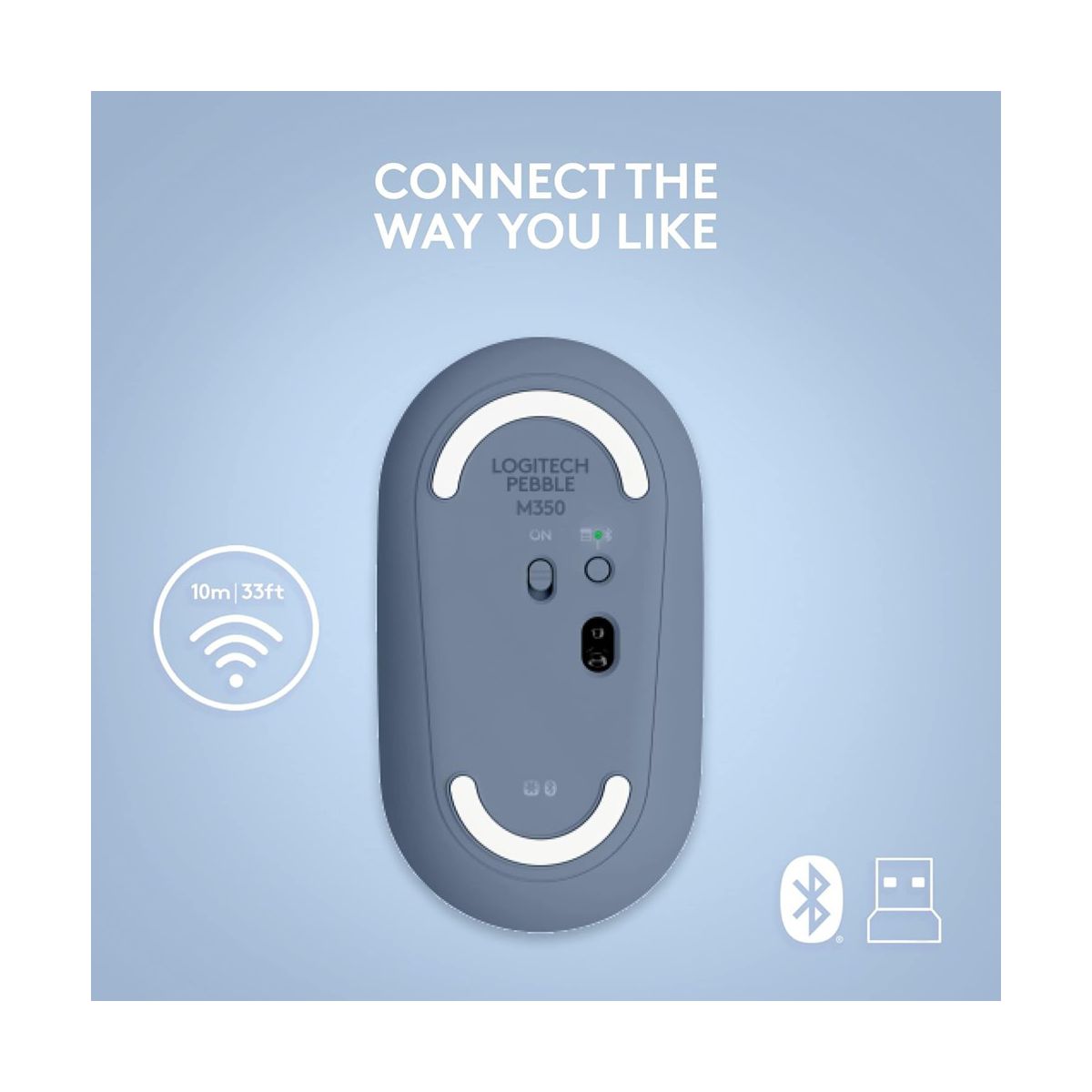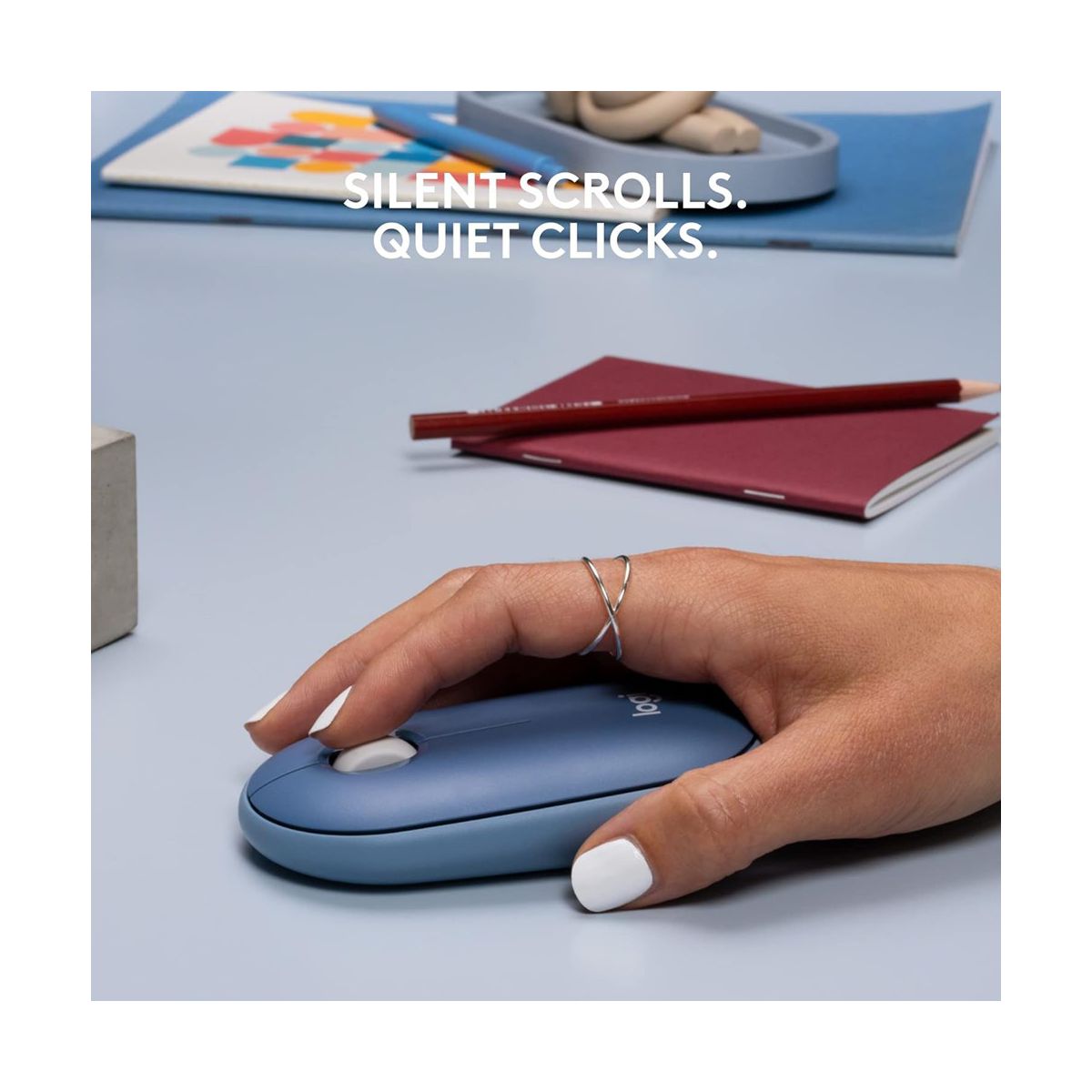 Logitech Pebble Wireless Mouse with Bluetooth or 2.4 GHz Receiver, Silent, Slim Computer Mouse with Quiet Clicks, - Blueberry