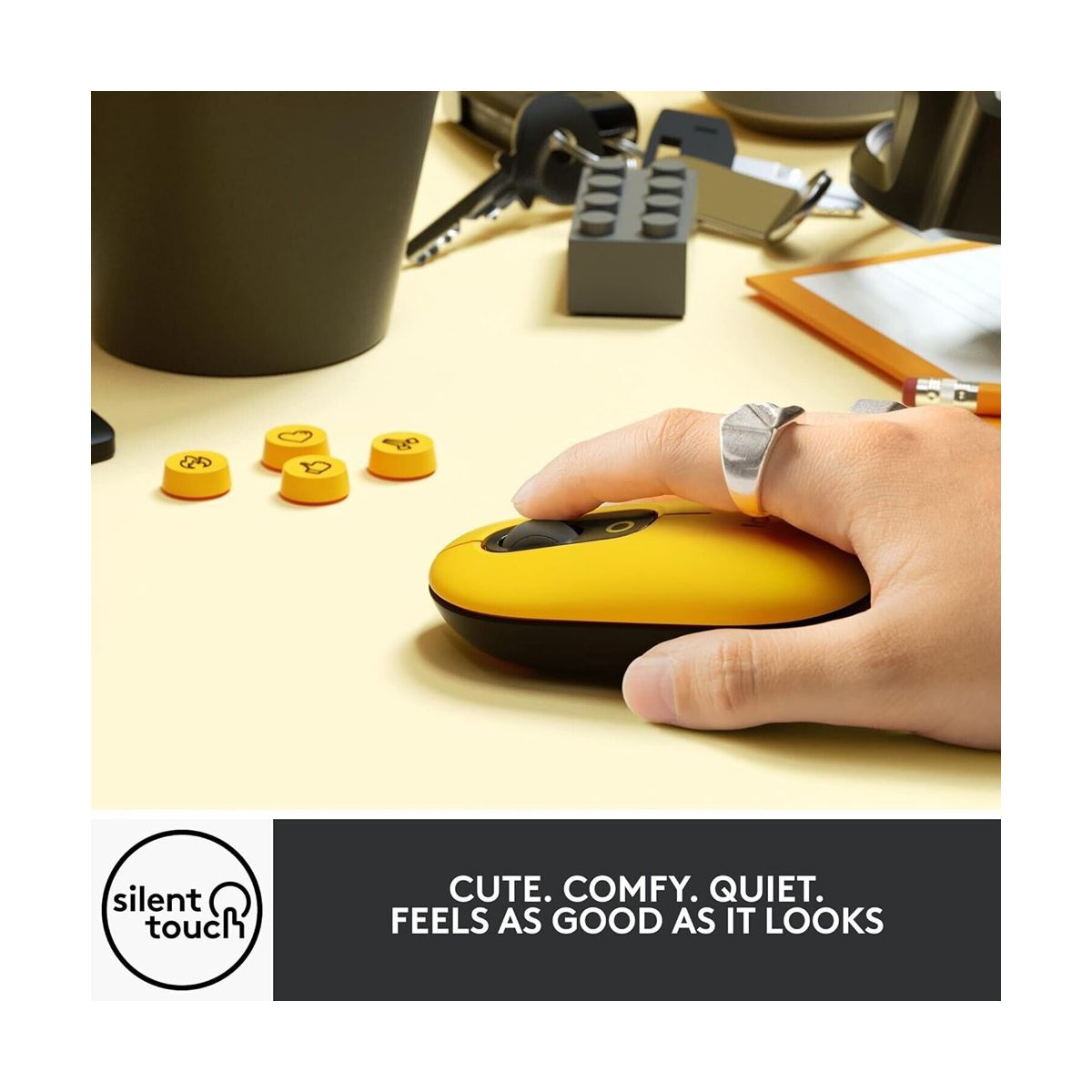 Logitech POP Mouse, Wireless optical Mouse with Customizable Emojis, SilentTouch Technology Blast Yellow