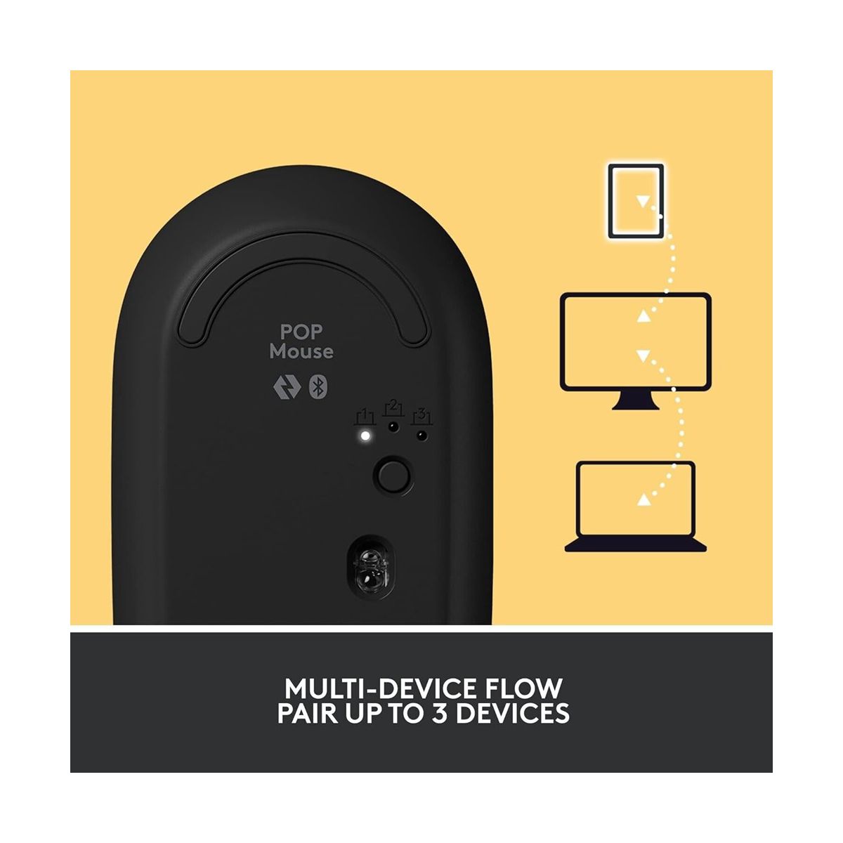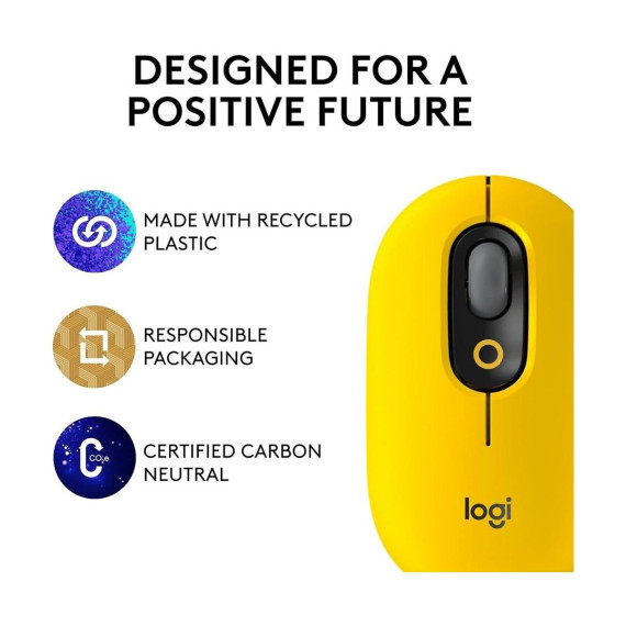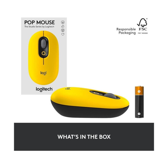 Logitech POP Mouse - Silent Wireless Mouse Let personality POP on your deskspace and beyond with POP Mouse, your whisper-quiet, wireless mouse with fresh customization features. Take your self-expression further and download Logitech Software to customize the top button. Give it your own twist by assigning it to send your favorite emoji or another shortcut - such as Snip Screen, Mic Mute or Voice-to-Text. POP Mouse fits comfortably in your hand and slips easily into your pocket, handbag or computer case. SilentTouch technology makes every click whisper-quiet. The portable mouse's SmartWheel stays in sync with you, easily shifting from high-precision to speed scroll mode. Pair POP Mouse with up to 3 different devices at once, and use the Easy-Switch button to toggle between them. Alternatively, activate FLOW and glide between screens as you work, transferring text, files and images with a simple copy and paste. Connect the cordless mouse to your desktop, tablet or phone* using Bluetooth or a Logi Bolt USB receiver which you can purchase separately. With a classic Logitech promise of durability, POP Mouse is your companion for the long haul, with up to 24-month battery life** and auto-sleep power-saving technology that helps it last. Product details: Number of buttons: 4 Top button customizable with Emoji Software Sensor technology: Logitech High Precision Optical Tracking Battery type: 1 x AA battery (included) Battery life: Up to 24 months** Connection type: Bluetooth 5.1 Compatible with Logi Bolt USB receiver Wireless range: 32.81 ft (10 m) Compatible with Windows 10 or later, macOS 10.15 or later, iPadOS, Chrome OS and Android *Windows, macOS, Chrome OS, Android, iPadOS **Battery life may vary based on use and computing conditions.