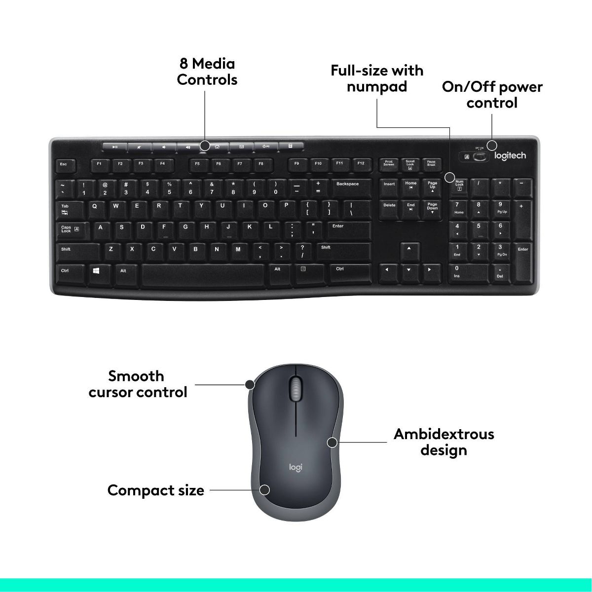 Logitech Wireless Keyboard and Mouse: USB-A Full Size, Mechanical Switch, Business Use