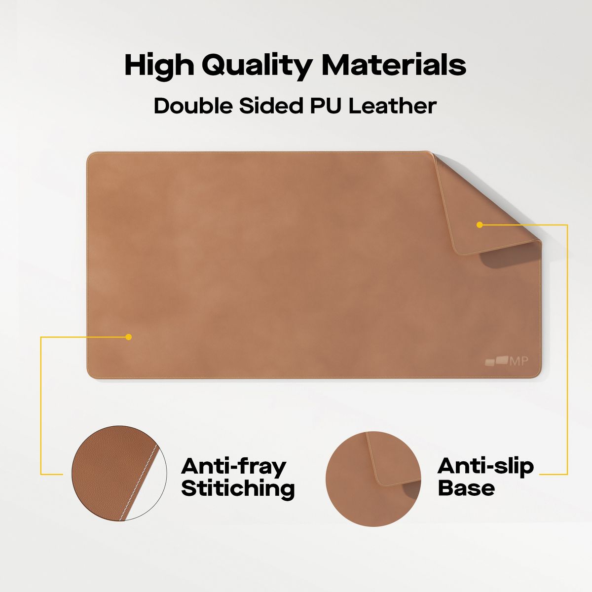 The Mobile Pixels 31.5-In. x 15.75-In. Desk Mat in Graphite Black is large enough to accommodate your laptop, mouse, and keyboard, with wide surface usage. The anti-scratch premium durable PU leather protects your desk from scratches, stains, spills, heat, and scuffs and it also gives your office a modern and professional atmosphere. It can be used as a mouse pad, keyboard pad, computer pad, and office desk pad all in one. Its smooth surface will make you enjoy writing, typing, and browsing. It is ideal for both office and home. The special nonslip design keeps the desk mat steady and adds stability during everyday use. The waterproof surface can prevent damage from spilled drinks or coffee. To clean it, simply wipe its surface with a wet cloth. Show your personal style, and make your desktop unique.