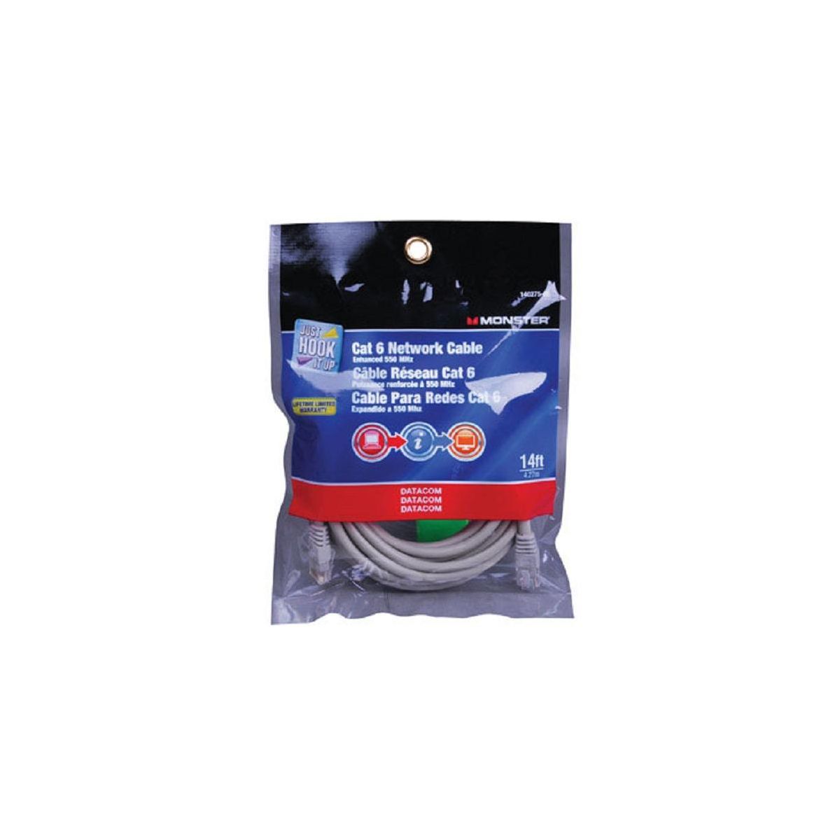 Monster JHIU 140275-00 Cat 6 Network Cable, Gray, 14'