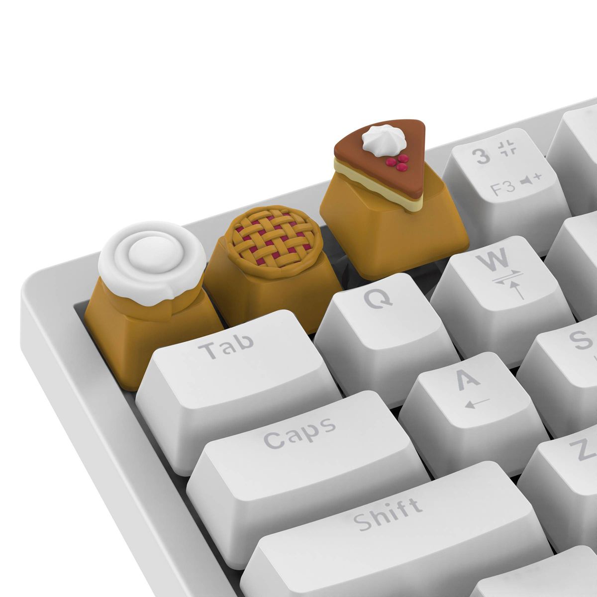 Add some flavor to your keyboard with the Dessert Key Pack from North. Swap out your boring standard keys for these tasty shapes that express your style. Made from durable materials with a tactile feel, these keys bring comfort and character to your setup. They are compatible with most mechanical keyboards with MX style cross shaped stems, Full-size (100%), Tenkeyless (TKL) 75%, 65%, and most compact keyboards.