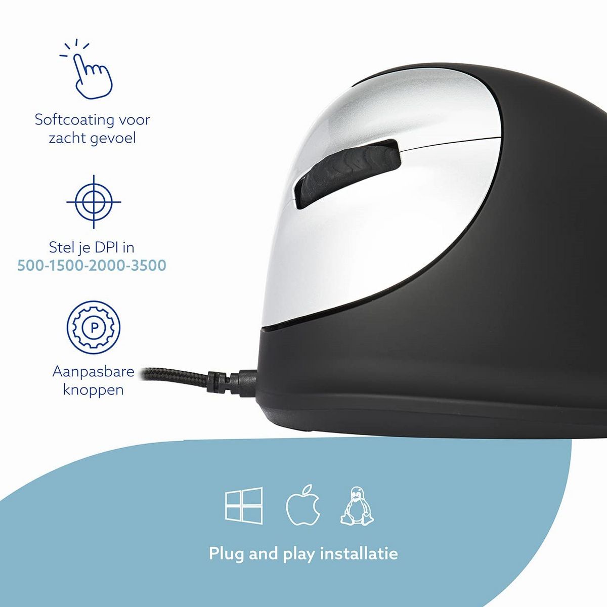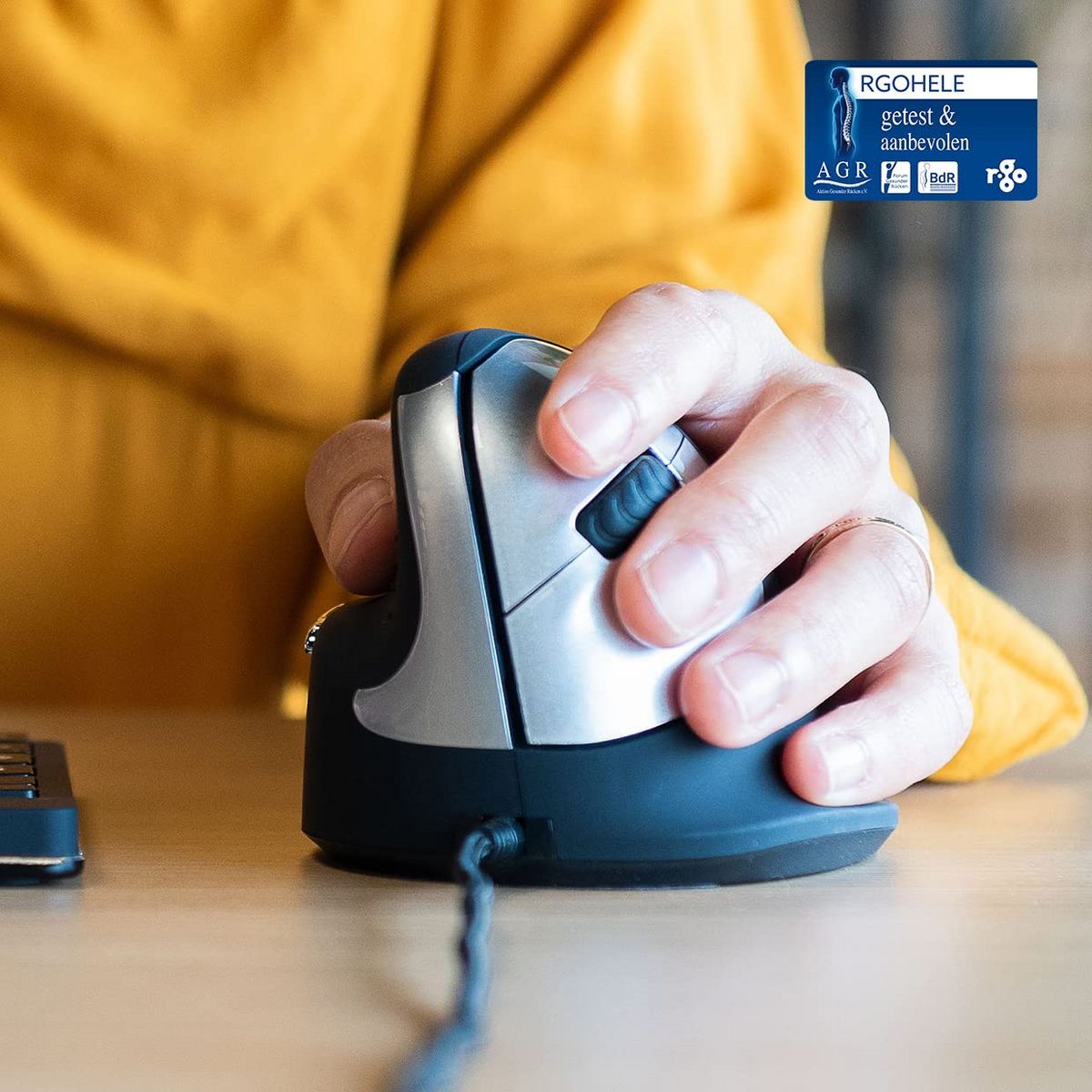R-Go Tools HE Vertical Wired 3400dpi Left Hand Mouse Left - Black, Silver