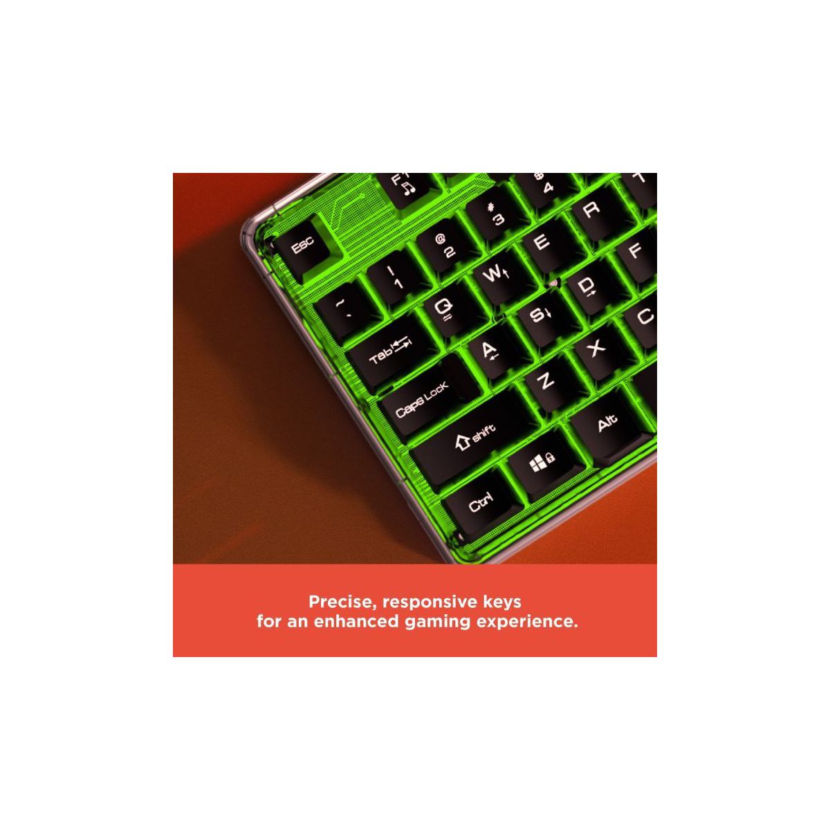 Gaming isn’t just about being the best player in the realm, or about defeating dragons, players and non-player characters, or exploring dungeons and vast in-game realms. It’s also about creating a space that you love to be in. So, let’s dispense with that old lifeless keyboard you’ve been using and upgrade to one that will change your environment forever. This state-of-the-art black gaming keyboard with transparent keys features stunning 5V LED backlit colors that provide a mesmerizing visual spectacle that will transform your gaming setup into a dynamic arena of action and excitement. The lighting effects can boost your creativity, making it an ideal choice for gamers, digital artists, and coders alike.