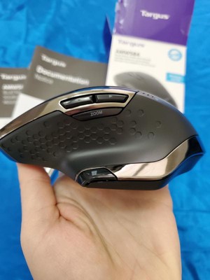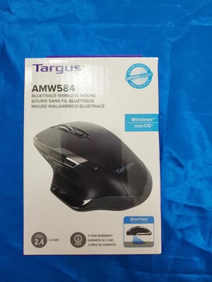 The BlueTrace Wireless Antimicrobial Mouse features the latest BlueTrace technology, which combines the power of optical technology with the precision of laser technology for remarkable tracking on almost any surface* including wood, granite, and carpet. Featuring a sleek, ergonomic design made for right-handed users, the BlueTrace Antimicrobial Wireless Mouse helps reduce wrist strain and offers easy access to its 7 buttons. Offering the convenience of wireless technology, simply plug in the USB receiver into your computer or store it within the mouse, so it's never lost and always ready for travel. With over 650 hours of battery life*** and an indicator when it’s running low, you are sure to be connected for the long haul. For an added benefit, this mouse features Targus DefenseGuardAntimicrobial Protection**, which creates a cleaner surface and works continuously to protect the mouse by preventing the growth of microorganisms. Unlike topically applied sprays, DefenseGuardmice are treated with an antimicrobial additive that does not wear off and lasts for the life of the product.*BlueTrace technology may not work on some glass or mirrored surfaces.**Antimicrobial protection is limited to the device itself. This mouse has been infused with an antimicrobial additive. Active ingredient: Silver Phosphate Glass (nano-). EPA Est/ 99234-CA-1***Battery life based on 2800 mAh battery capacity.
