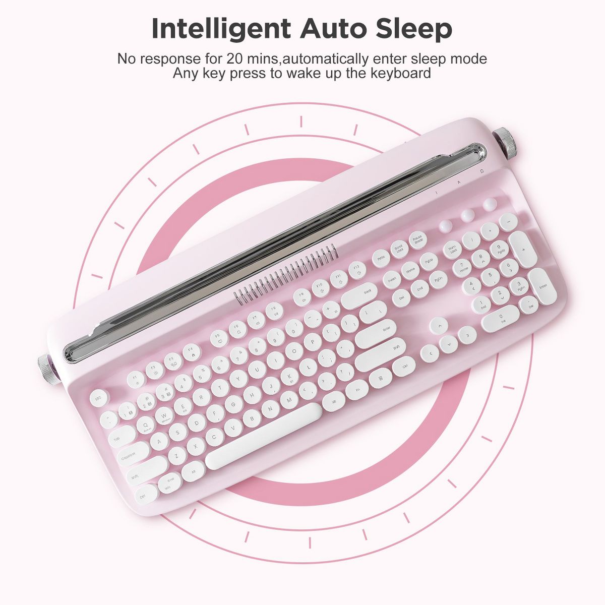 Wikineon Wireless Typewriter Keyboard, Bluetooth Connection, Cute Retro Aesthetic Design with Integrated Stand for Tablet Phone PC and Win/Mac/Android