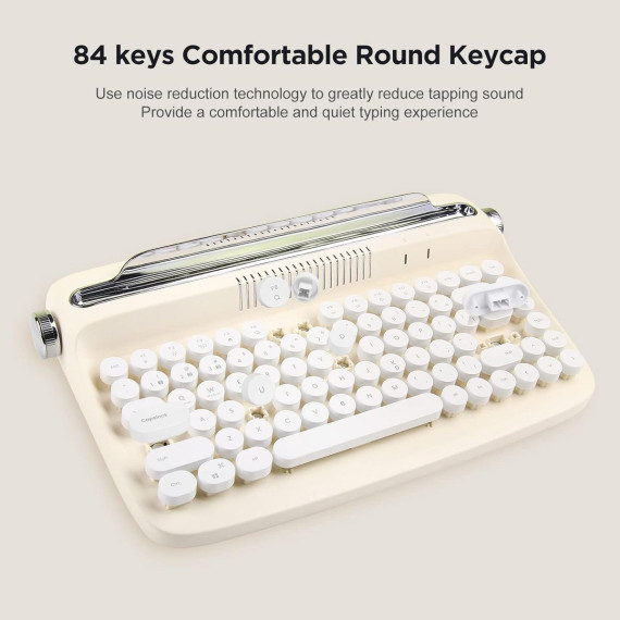Wikineon Wireless Typewriter Keyboard, Bluetooth Connection, Cute Retro Aesthetic Design with Integrated Stand for Tablet Phone PC and Win/Mac/Android