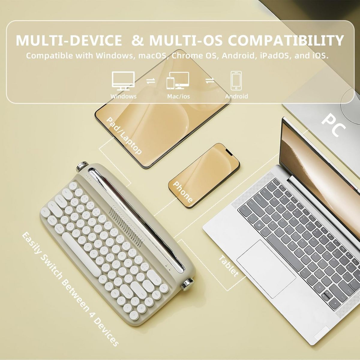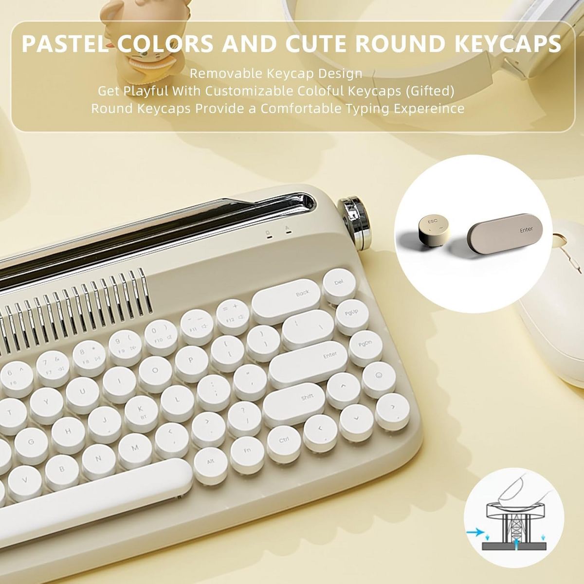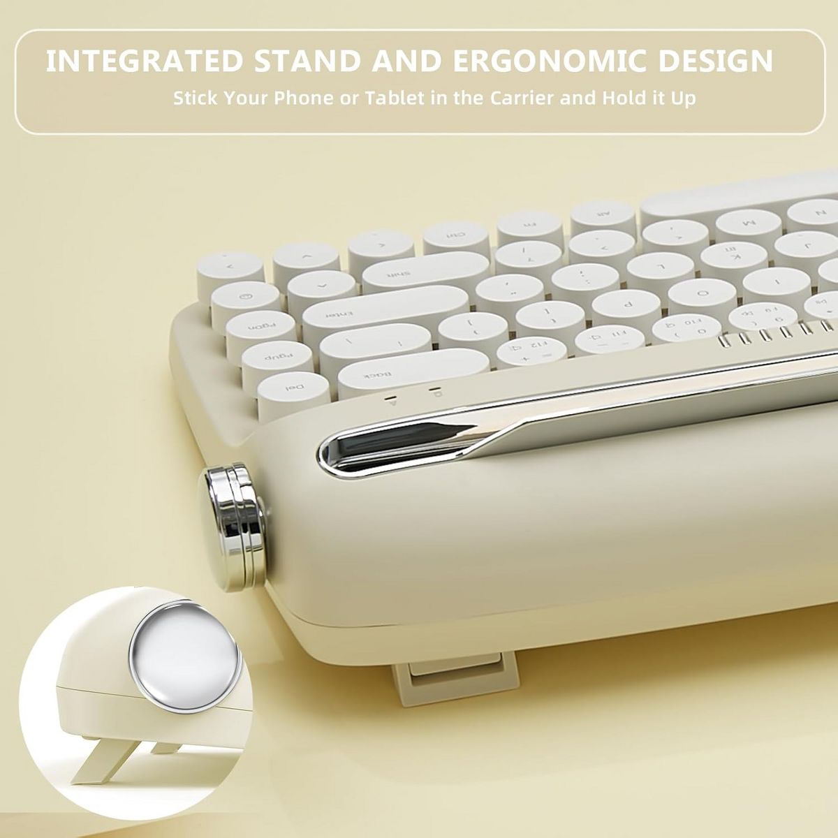 Wire/Wireless Typewriter Keyboard, USB-C/Bluetooth Connection, Cute Retro Aesthetic Design with Integrated Stand for Tablet, Phone, Win/Mac/Android