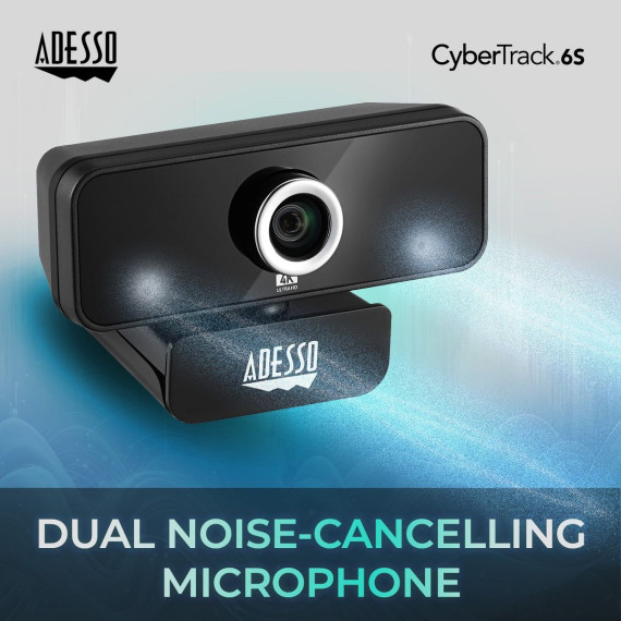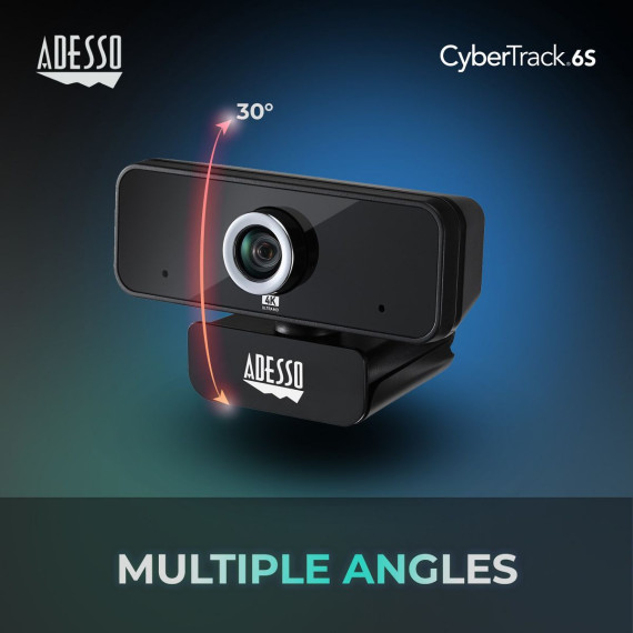 The CyberTrack 6S is Adesso's first 4K Ultra HD desktop webcam with manual focus. The 4K True Color High Definition video processing allows you to record and share vivid HD quality video. With its 110-degree viewing angle; 360-degree swivel and 180-degree tilt, the webcam lets your audience feel like they are in the room with you. This webcam includes an integrated stereo microphone that lets your voice be heard loud and clear, whether you are chatting with loved ones or conducting a business video conference. The CyberTrack 6S also features a tripod-ready clip for additional placement options.