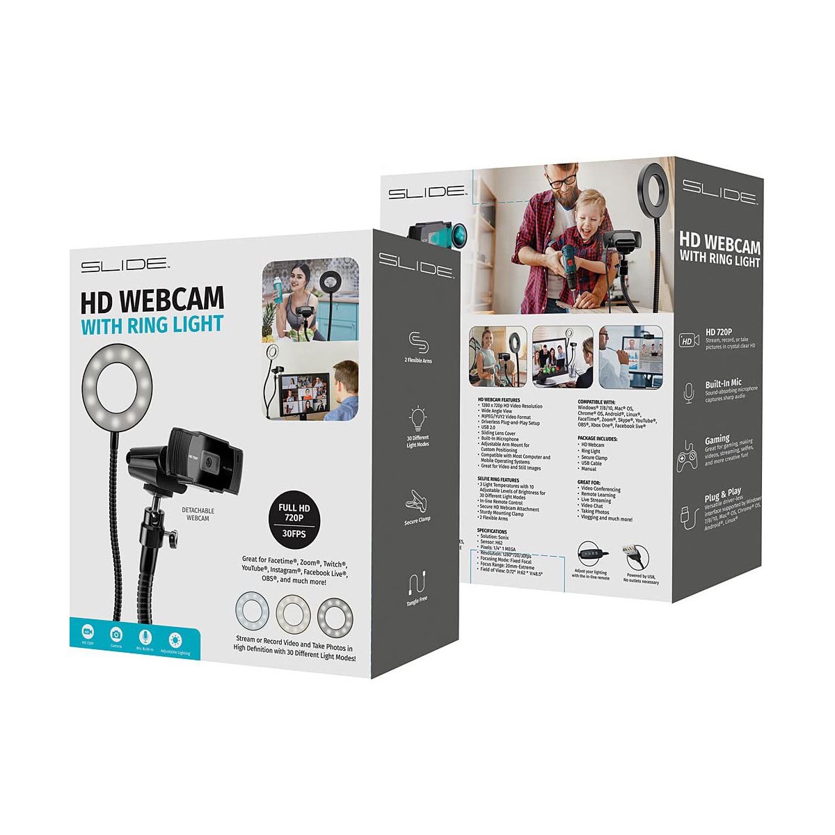 - Universal Use: If there's a moment for you to shine on the internet, the Slide Full HD Webcam Studio Light Ring is ready to assist you. This is the perfect webcam for streaming on YouTube, Facebook Live, Twitch, or on any other platform with crystal-clear quality and frame rate! Or you could record yourself for a future video, or maybe even take a photo through screenshots! In truth, the possibilities are endless.