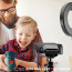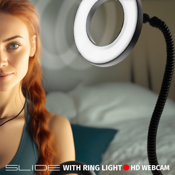 Present yourself from a new perspective ' literally! The Slide Innovations Full HD Webcam with Studio Selfie Ring Light allows you to record yourself during livestreams, conference calls, zoom virtual meetings, as well as show yourself off when recording videos or taking screenshot photos. With its crisp and clear full high definition quality, the webcam ensures that everyone who'll be watching you will be able to do so with ease and clarity ' no pixelation, no fuzziness, no 160p quality! This is top-notch video equipment without breaking the bank. To further make the experience more pleasant, and perhaps even customizable, the included ring light for phone has 30 different brightness options for you to choose from! Find the best one for yourself, or select a brightness level that complements the room's lighting. And speaking of rooms, you don't even have to be in one to take advantage of the camera! Thanks to its flexible gooseneck design (as well as the light's gooseneck), you can customize interesting and fitting viewing angles ' no need to have the camera directly point at you when you can have it point from down below, from the side, or even from up above.