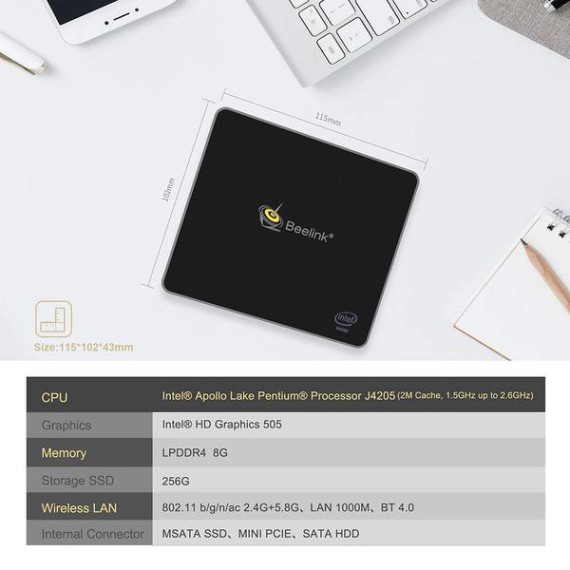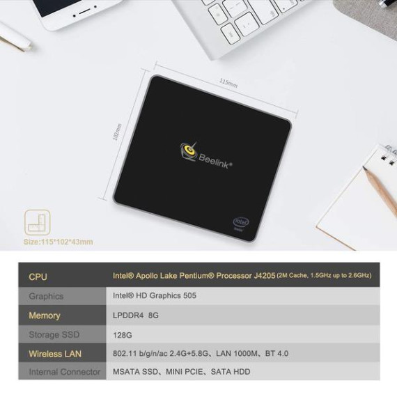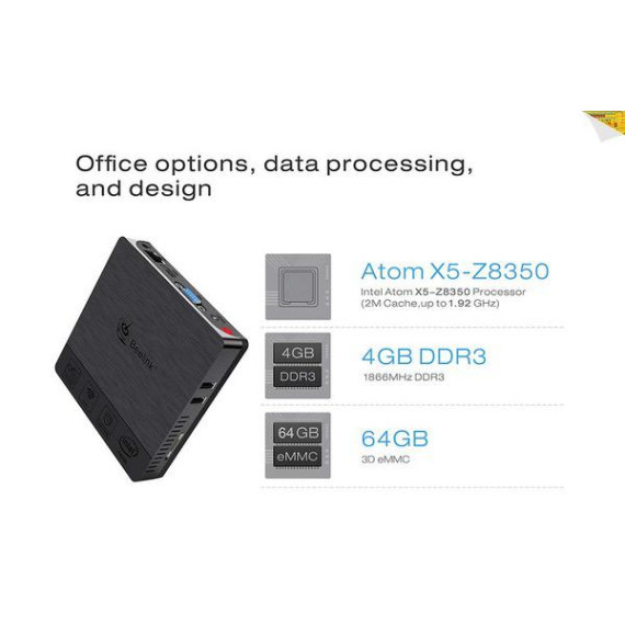 Beelink BT3 X Mini PC 4GB RAM LPDDR4 64GB eMMC Intel Apollo Lake Celeron Processor J3355 HD Graphics 500 Dual Screen Display 4K Desktop PC, VESA Mount,Dual WiFi