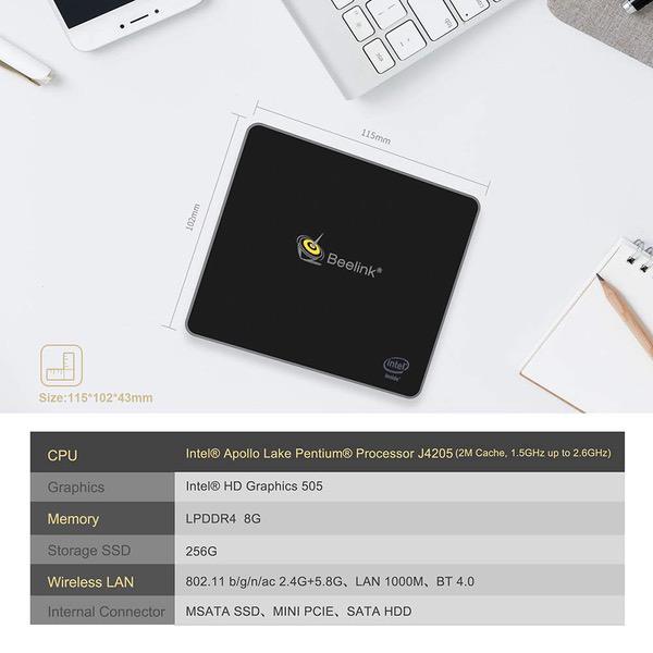 Beelink J45 Mini PC LPDDR4 8GB / 128GB SSD Intel Apollo Lake Pentium J4205 Quad Core Intel HD Graphics 505 4K Desktop PC 1000Mbps/LAN 2.4+5.8GHz Dual Band WiFi