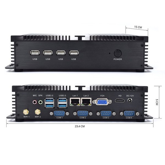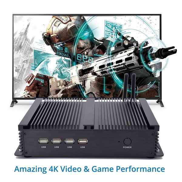 Kingdel Powerful Mini Desktop Computer, Fanless Industrial PC, Intel i5 Dual Core CPU, 4GB RAM, 512GB SSD, 2xNICs, 4xUSB 3.0, 4xCOM RS232, HDMI, Metal Case, Windows 10 Pro