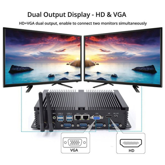 Kingdel Powerful Mini Desktop Computer, Fanless Industrial PC, Intel i5 Dual Core CPU, 8GB RAM, 128GB SSD, 2xNICs, 4xUSB 3.0, 4xCOM RS232, HDMI, Metal Case, Windows 10 Pro