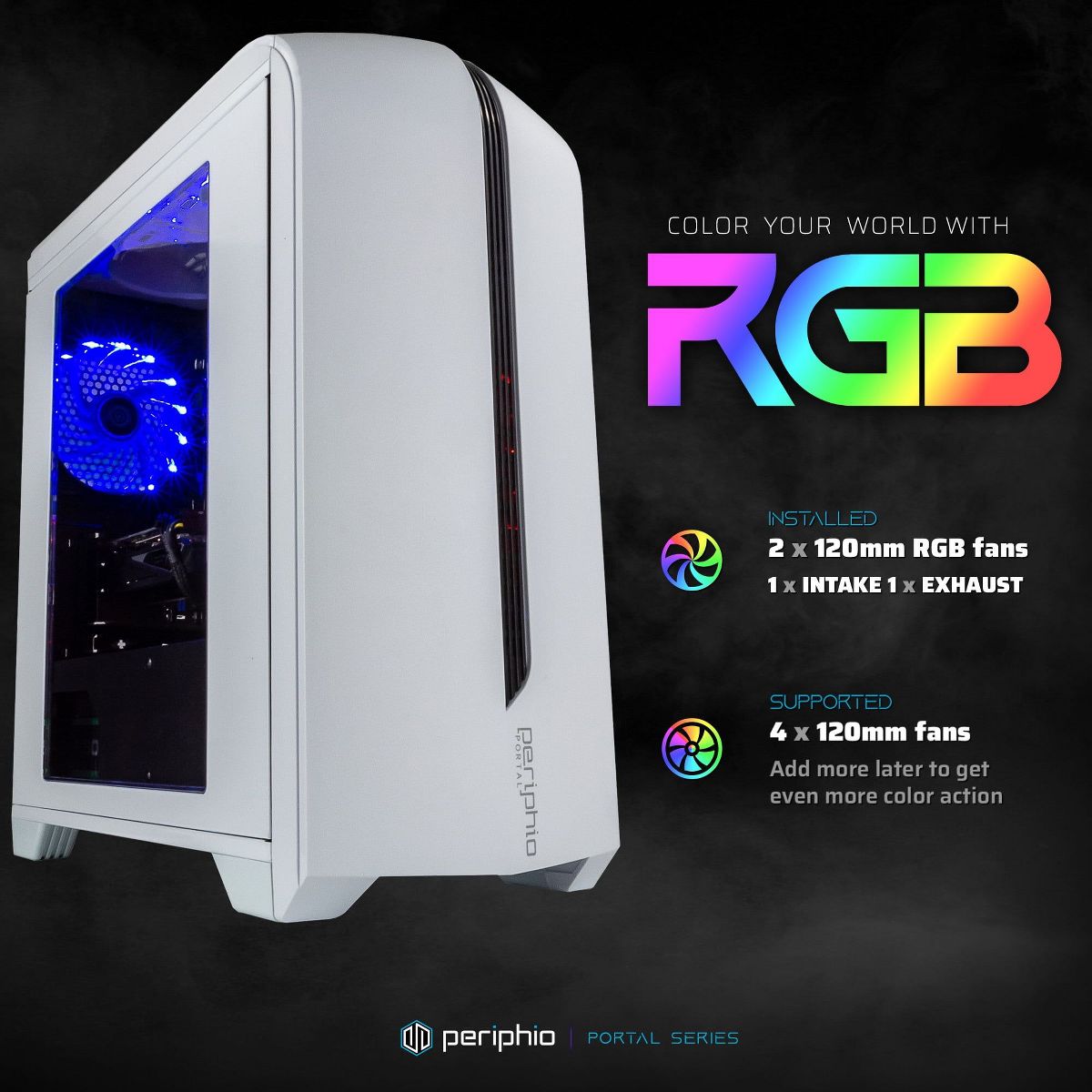 [More About the System] Part of our Portal Series, the Warp features a unique standout design with a curved front panel and compact footprint. Its all-white design is clean and vibrant, and the acrylic side panel lets viewers see inside so you can show off your hardware, just like it was meant to be! Positioned as the perfect entry into PC Gaming, the Periphio Warp embodies a future-proof design and plenty of PSU overhead for the budding PC enthusiast!