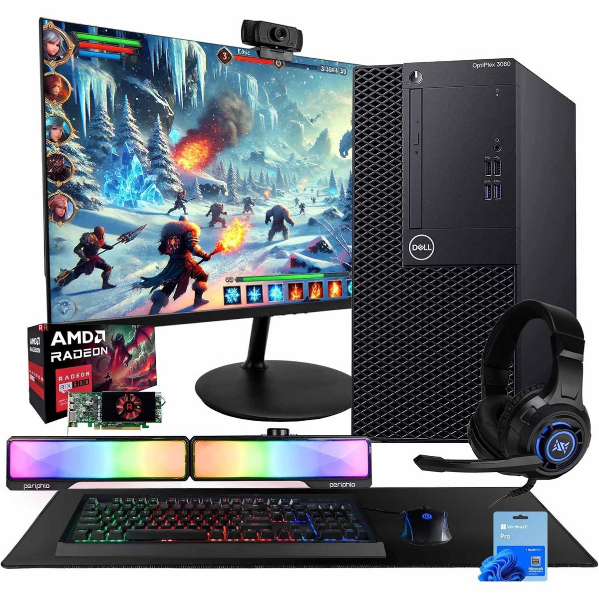 Refurbished Dell Optiplex 3060 Tower Computer-Intel i5-AMD Radeon RX550-32GB RAM-250GB NVMe+1TB SSD-24"LCD-Windows 11 Pro-Manufacturer Refurbished