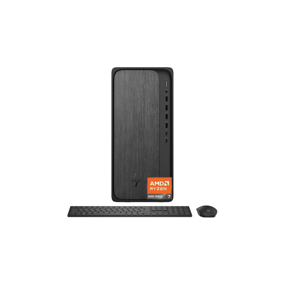 A stylish desktop PC that blends modern design with proven technology, from a trusted brand you can count on. Whether working on your latest project, watching videos, or everyday tasks • Process and Graphics: AMD Ryzen 7 8700G Processor 4.2GHz up to 5.1 GHz max boost clock - 8-core - 16 MB L3 Cache - AMD Radeon 740M Graphics • Ram and Storage: 16 GB DDR5-5200 MT/s memory(3) (1 x 16 GB) (expandable to 64 GB unbuffered with 32 GB DIMMs) - 1TB PCIe Gen4 NVMe M.2 Solid State Drive • Ports and Communication: 1 USB Type-C 10Gbps signaling rate; 1 USB Type-C 5Gbps signaling rate; 2 USB Type-A 10Gbps signaling rate; 2 USB Type-A 5Gbps signaling rate; 1 headphone/microphone combo Rear: 4 USB 2.0 Type-A; 1 microphone; 1 RJ-45; 1 line in; 1 line out, 1 DisplayPort 1.4a; 1 HDMI-out 2.1 - Wi-Fi 6 (2x2) and Bluetooth 5.4 wireless card • black keyboard and mouse combo - Windows 11 Home - This item is a manufacturer-refurbished product. It has been inspected, cleaned, and repaired to meet manufacturer specifications and is in excellent condition. The refurbishment process includes functionality testing, basic cleaning, inspection, and repackaging. The product ships in a generic box.