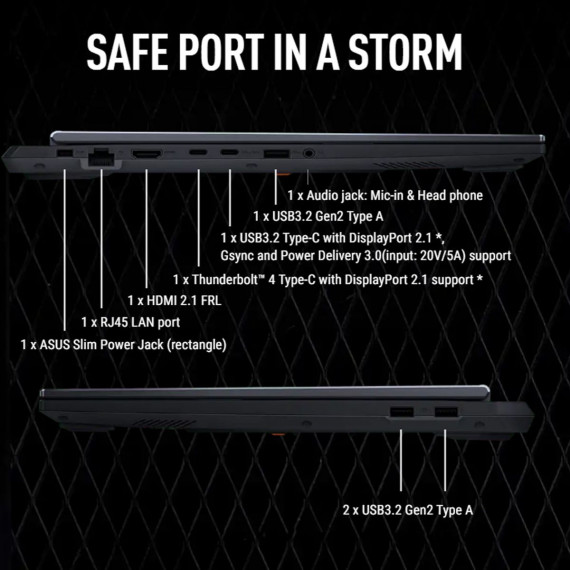 ASUS TUF F16 RTX 5050 Pro Gaming Laptop delivers top-tier performance for gaming, creative workloads, and heavy multitasking with its Intel Core i7-14650HX 16-core processor and NVIDIA GeForce RTX 5050 GPU with 8GB GDDR7. With 64GB DDR5 RAM and a massive 4TB PCIe NVMe SSD, it provides exceptional memory capacity, fast load times, and ultra-responsive system performance. The 16″ FHD+ (1920×1200) IPS-level display features 100% sRGB color, 165Hz refresh rate, anti-glare coating, G-Sync, and MUX Switch with NVIDIA Advanced Optimus for improved efficiency and low-latency gaming. Connectivity includes Thunderbolt 4, multiple USB-A and USB-C ports, HDMI, RJ-45 LAN, Wi-Fi 6, Bluetooth, 1080p FHD camera, and an RGB backlit keyboard. Powered by Windows 11 Pro, it supports enterprise features like Windows Hello for Business, Azure AD, and Domain Join. Perfect for serious gamers, creators, and professional power users alike.