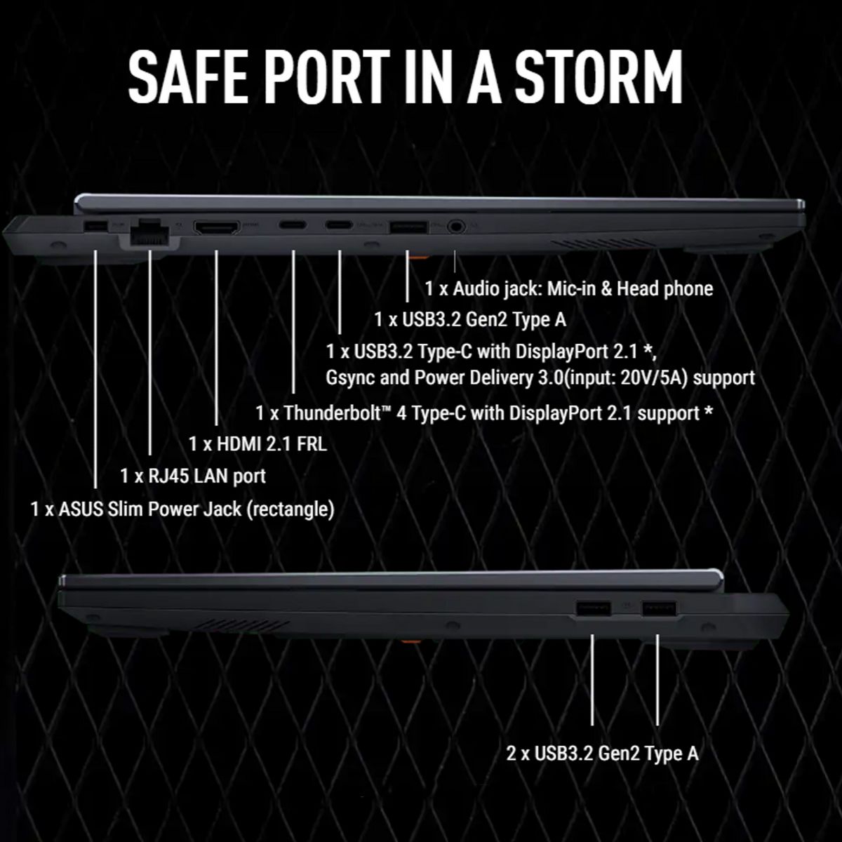 ASUS TUF F16 RTX 5050 Pro Gaming Laptop delivers serious performance for gaming, content creation, and multitasking with its Intel Core i7-14650HX 16-core processor and NVIDIA GeForce RTX 5050 Laptop GPU with 8GB GDDR7 VRAM. It features 32GB high-bandwidth DDR5 RAM and a fast 1TB PCIe NVMe SSD for responsive system performance, rapid load times, and smooth multitasking. The 16-inch FHD+ (1920×1200) IPS-level display offers a 165Hz refresh rate, 100% sRGB coverage, anti-glare finish, G-Sync, and MUX Switch with NVIDIA Advanced Optimus for optimal balance between power and efficiency. Connectivity includes Thunderbolt 4, USB-C, multiple USB-A ports, HDMI, RJ-45 LAN, Wi-Fi 6, Bluetooth, a 1080p webcam, and an RGB backlit keyboard. Windows 11 Pro supports enterprise features like Windows Hello for Business, Azure AD, and Domain Join, making it ideal for both high-performance gaming and professional productivity.