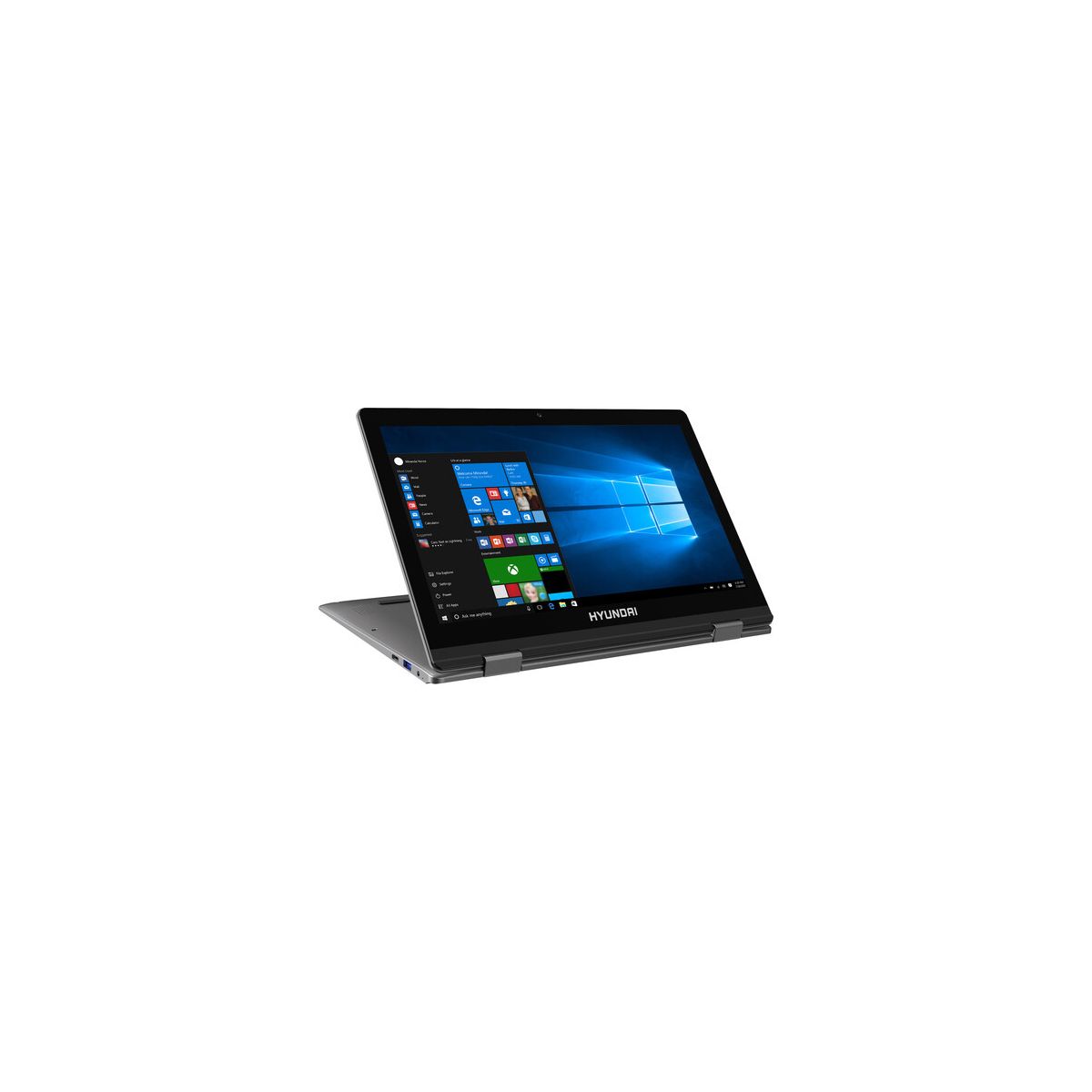 Combining heavyweight performance with lightweight portability, the Hyundai HyFlip possesses an Intel Celeron processor enabling high-speed connectivity and ultra-responsive multi-tasking performance in a sleek package. This 2-in-1 convertible laptop is all about the details - a foldable 360° design and its ultra-responsive FHD touch screen display. The Hyundai HyFlip is packed with speed and power to amplify your productivity. Expand your storage capacity with its M.2 SSD slot and microSD slot. Faster boot-ups and smoother transitions when you flip from laptop mode into tablet and back. Backed by a limited 1-year warranty, every Hyundai product is built with absolute quality and precision.