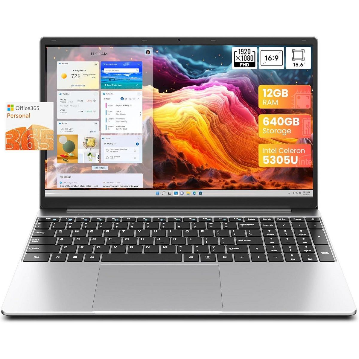 15.6-inch laptop computer: 12GB RAM, 640GB ROM (512GB SSD + 128GB EMMC), 2.3GHz Processor 5305U, Office 365 1-Year Subscription, windows 11 laptop computer