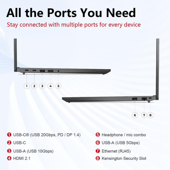 Lenovo ThinkPad E16 Gen 2 is a 16" FHD+ touchscreen business laptop (1920×1200, 16:10, 300 nits, TÜV Low Blue Light, 60Hz) powered by Intel Core Ultra 7 155U (12 cores, 14 threads, up to 4.8GHz) with 64GB DDR5 RAM and 1TB PCIe SSD for lightning-fast multitasking and rapid data access. Connectivity includes Thunderbolt 4 USB-C, USB-A, HDMI, Ethernet, Wi-Fi 6, Bluetooth, and a 1080p webcam with privacy shutter. Windows 11 Pro with AI Copilot provides enterprise-grade security, remote management, and AI-driven workflow automation for smarter, more efficient business productivity.