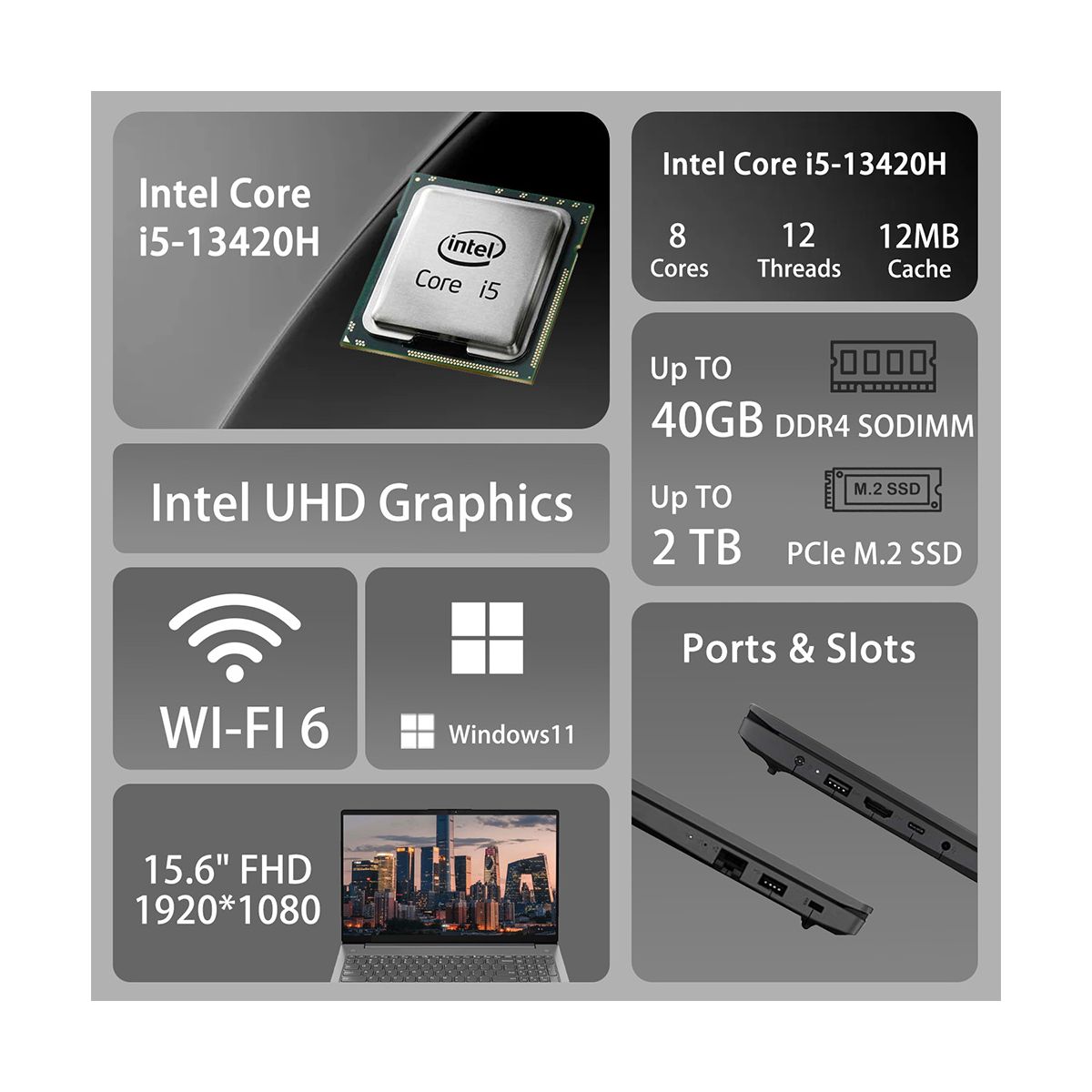The 15.6-inch FHD (1920×1080) display offers crisp, clear visuals with a 60Hz refresh rate, providing an immersive viewing experience for spreadsheets, presentations, creative projects, or video calls. Its anti-glare screen enhances viewing comfort during long work sessions.