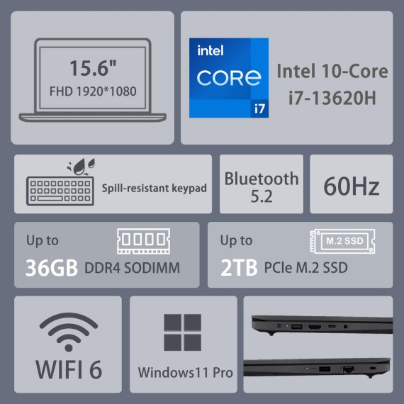 LENOVO V-Series V15 Gen 4 Business Traditional Laptop, 15.6" FHD 1920*1080 Non-touch 60Hz, Intel Core i7-13620H, Intel UHD Graphics, 16GB DDR4 SODIMM, 512GB PCIe M.2 SSD, Wi-Fi 6, Windows 11 Pro, Black