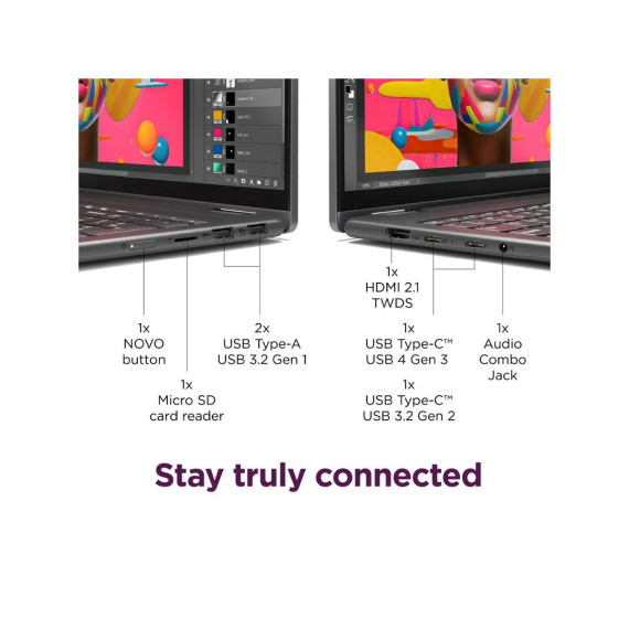 It’s inspiration all around with the Lenovo Yoga 7i 2-in-1, delivering 360° of flexibility, impressive performance, and ultra-immersive audio-visuals. Primed with creating power from up to the latest Intel Core Ultra processor, you can unleash greatness in every way. The larger 16” 16:10 WUXGA display makes entertainment and creative projects come to life like never before. All that with a fast-charging battery and all the ports you need, it's your art studio, home office, and cinema all in one..
