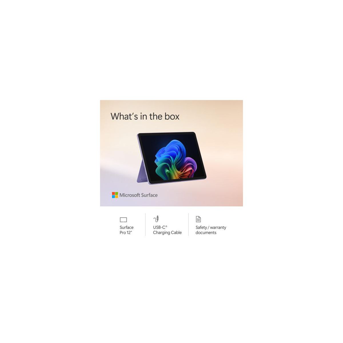 Please note this product releases on May 20th, 2025 and will not be made available until that date. Get the flexibility you want and the speed you need with Surface Pro 12", a Copilot+ PC and the most versatile Surface. Use it as a tablet. Express yourself with touch, voice, and Surface Slim Pen. Or click in the Surface Pro 12" Keyboard for a full laptop experience. And you can wear your style on your laptop with a choice of colors and finishes. When you have all this, plus advanced AI capabilities in one ultra-thin and light device, the power to go beyond what you thought possible is yours. Copilot+ PC. A new AI era begins Turn your ideas from text prompts into generated artwork. With Recall search across time to find the content you need. Understand new languages instantly with Live Captions. Copilot+ PCs powered by the Snapdragon X Plus processor come with 45 Trillion Operations Per Second of NPU power, and theyre all set to transform the way you create, find and communicate. Brilliant Display Immersive Brilliance or Incredible image quality The 12" PixelSense Flow touchscreen offers a vibrant and immersive viewing experience. All-day Energy Up to 16 hours of battery life for local video playback for uninterrupted streaming Power up Built with the latest Qualcomm Snapdragon X Plus 8 Core processors, Surface Pro delivers powerful performance and AI accelerated power. Turbocharged NPU Surface Pro features the Qualcomm Hexagon NPU that delivers up to 45 TOPs designed to accelerate AI experiences Express your style Surface Pro comes in three new colors Violet, Ocean, and Platinum. The ports you need Charge on-the-go, transfer data fast, or create the ultimate desktop set up with two USB-C 3.2 ports. Always charged and ready Store and charge Surface Slim Pen directly in the new pen storage area on the back of Surface Pro. Designed to be a laptop or a tablet The iconic built in 165-degree fluid kickstand delivers flexibility at any angle. Laptop Productivity When paired with Surface Pro 12" Keyboard, Surface Pro turns into a full thin and light Windows laptop with a comfortable typing and touchpad experience. You are the security Windows Hello is a faster, more personal, more secure way to get instant access to your devices using only your facial recognition theres no password to remember. Productivity and efficiency, redefined Powered by Snapdragon X Plus 8 Core processors and a turbocharged NPU you can save time on daily tasks with exclusive Copilot+ PC experiences. What's in the box: Surface Pro 12", USB - C charging cable, No power adapter included, No keyboard included, Quick Start Guide, Safety and warranty documents.