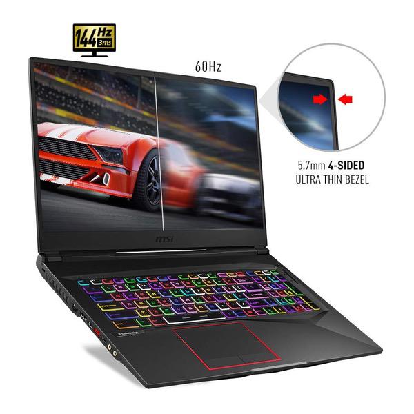 MSI GE75 Raider-023 17.3" Ultra Thin Bezel Gaming Laptop NVIDIA RTX 2080 8G, 144Hz 3ms, Intel i7-8750H (6 cores), 32GB, 1TB NVMe SSD + 2TB HDD, Per Key RGB, Win 10, Aluminum Black
