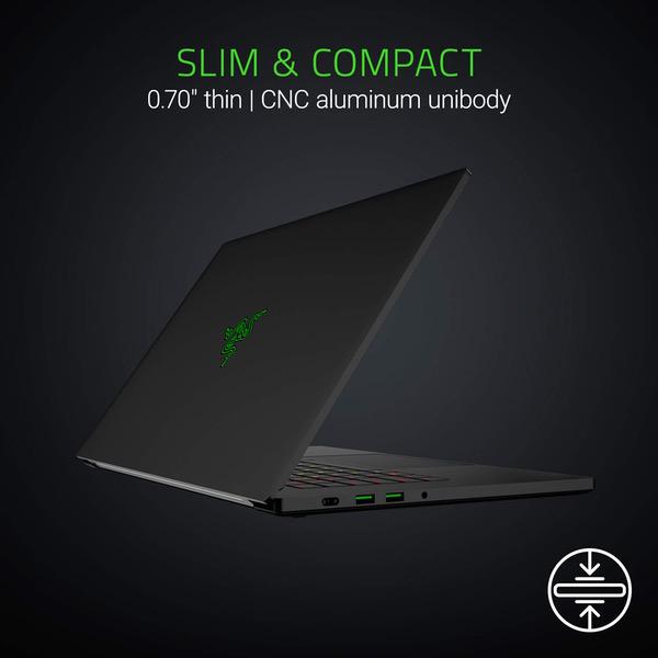 Make sure this fits by entering your model number. Zero Compromise Powerhouse: Built for gaming and creative work in a compact 0.70" thin CNC aluminum unibody with high-performance, vapor chamber cooling Futureproof Design: Thunderbolt 3 enabled, compatible with Razer Core external GPU enclosures for additional graphics power; supports SSD and dual-channel memory upgradeability Perfect Display for Work or Play: An edge-to-edge 15.6" Full HD, 100% sRGB, factory-calibrated matte screen with a 144Hz refresh rate offers the best experience both creative tasks and intense gaming sessions Biometric Security: Supports Windows Hello instant facial unlock Customizable RGB Individual Key Lighting: Includes 16.8 million colors available with multiple preset profiles Summary: 8th Gen Intel Core i7-8750H 6 core processor w/ 4.1GHz turbo, NVIDIA GeForce RTX 2070 w/ Max-Q, 15.6" FHD 144Hz matte display, 16GB RAM, 256GB SSD