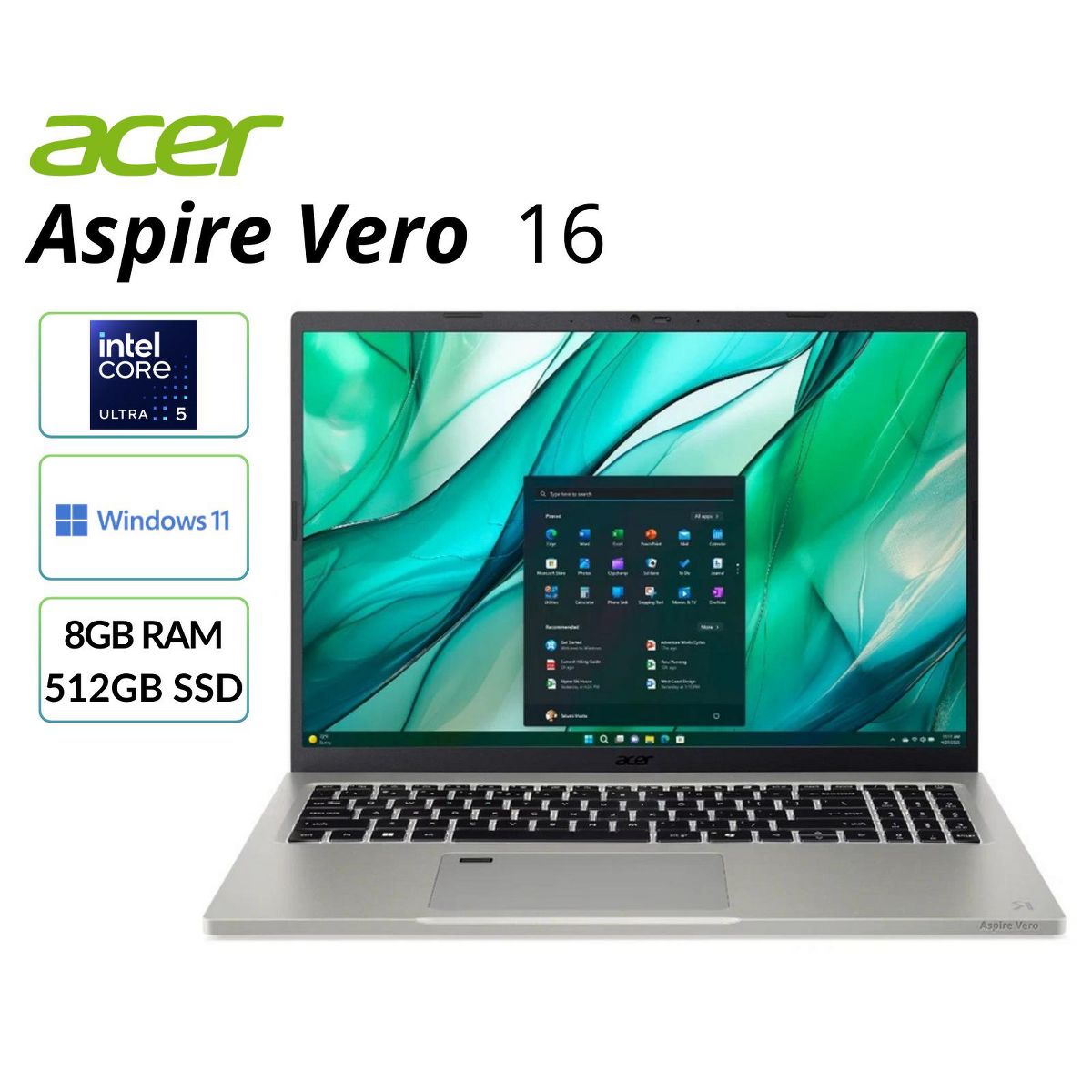 Refurbished Acer Aspire Vero 16-16" Intel Core Ultra 5 16GB RAM 512GB SSD - AV16-51P-58KU - Manufacturer Refurbished