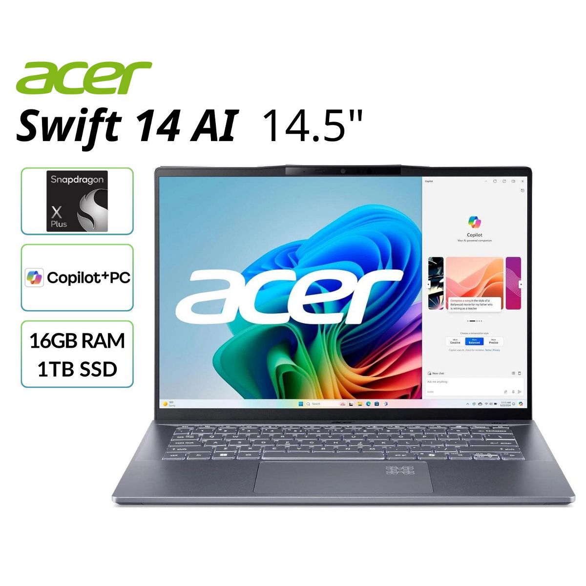 Refurbished Acer Swift 14 AI - Qualcomm Snapdragon - 1TB Storage - SF14-11T-X3RZ - Manufacturer Refurbished