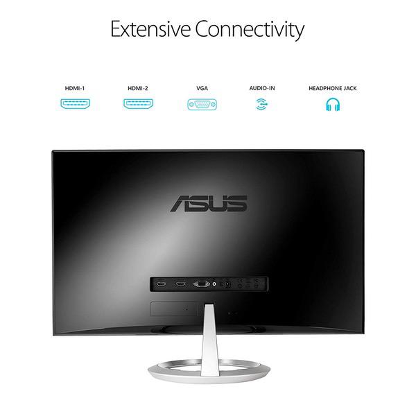 This beautiful display is connected to my Mac Mini via HDMI cable. The image is sharp. For Mac users trying to get a sharp image via HDMI, the trick is to open System Preferences > Displays and set "Underscan" to OFF. The attached screen shot shows Mac OS display settings for the ASUS MX259H. The frame is minimal and sleek. The silver base matches the silver Mac Mini. The 25-inch size that I bought, replaced an older 27-inch Samsung LCD display. I wasnt sure about down-sizing, but had noticed I dont really need the full 27-inch size and wanted a more minimalist work space. 25-inch size is perfect. There are multiple settings for various lighting conditions, which can be selected using a button on the lower right. I like that. The built-in speakers are good enough for watching YouTube. Although the computer volume control will not raise and lower sound volume of built-in speakers. This could be due to HDMI delivering constant volume. Speaker volume must be adjusted using a button on the bottom right. I was hesitant about buying a display from Amazon, because I didnt want to risk damage, even a little, since I will be looking at it for a few years. I was pleasantly surprised to find it double-boxed. The outer box was not damaged. The inner ASUS box had packaging around it for padding. The monitor was packed securely inside the ASUS box.