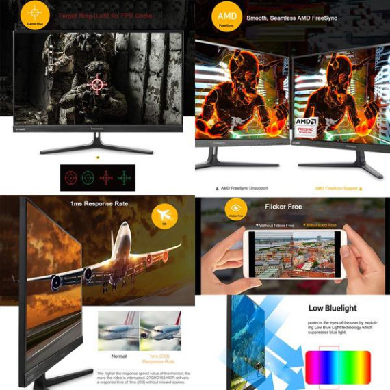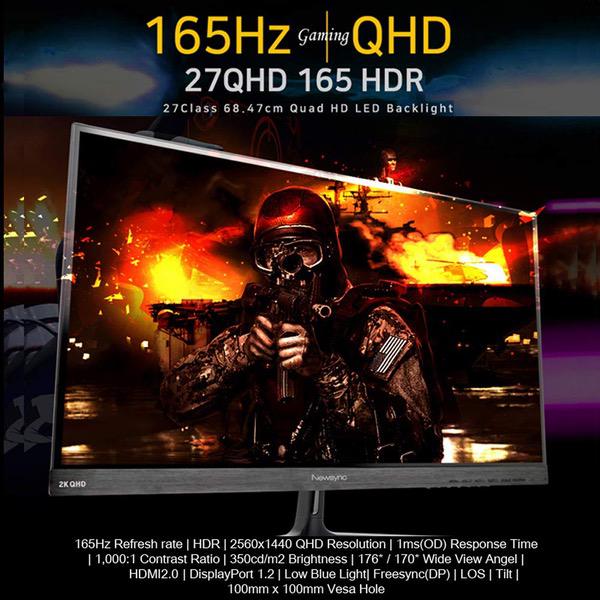 NEWSYNC 27 inch Real 165Hz (DP 1.2) 144Hz (HDMI 2.0) 1ms 1440p QHD Gaming Monitor (AMD FreeSync, Crosshair Target, Flicker-Free, Low Blue Light, HDR, Slim Bezel) DisplayPort, HDMI, DVI (27QHD 165 HDR)