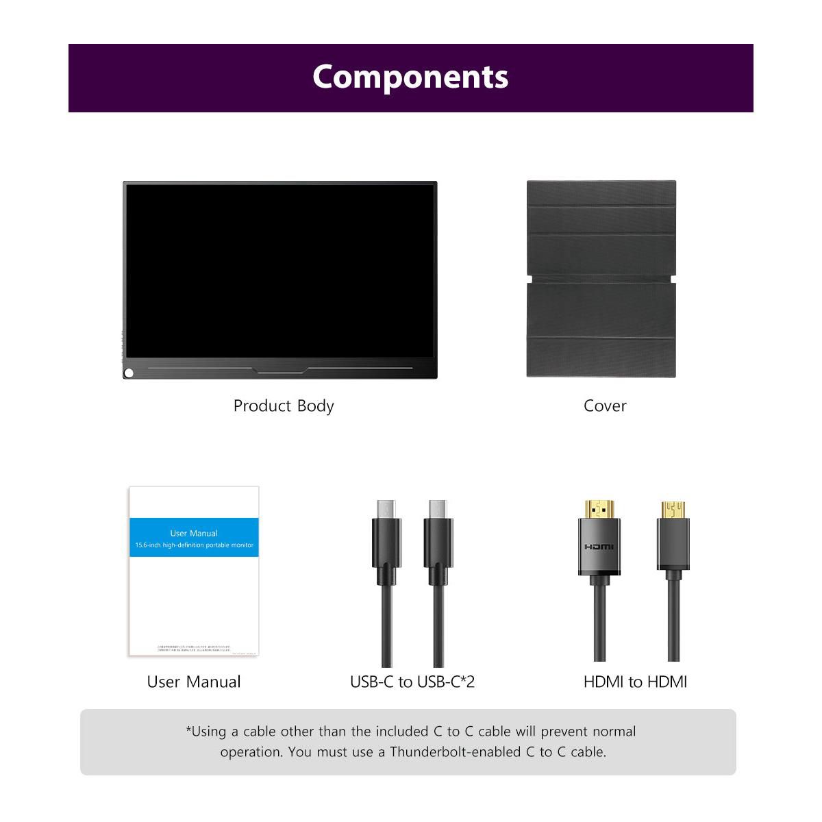 Portable Monitor 15.6" 4K UHD 3840X2160 100% sRGB 60Hz IPS HDR HDMI USB-C Travel Monitor for Laptop - Preowned