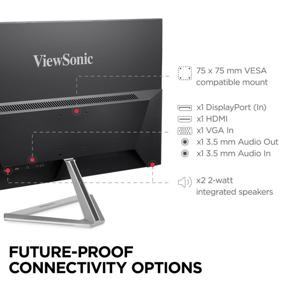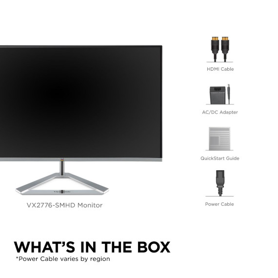 The ViewSonic VX2776-smhd is a sleek 27"Full HD monitor with a modern and minimalist style perfect for home use. With SuperClear IPS Panel technology, this monitor offers best-in-class screen performance with ultra-wide viewing angles. A premium ID includes an ultra-slim profile, unique desktop stand, and a sleek edge-to-edge frameless design, that when combined with vivid 1920x1080 resolution and dual speakers, deliver an immersive viewing experience for home entertainment and multimedia applications. HDMI, DisplayPort, and VGA inputs offer flexible connectivity options for both computing and gaming environments, while ViewSonic's exclusive ViewMode feature provides intuitive presets for optimized screen performance in different applications. In addition, Flicker-Free technology and a Blue Light Filter help to minimize eye strain from extended viewing periods.***** Manufacturer Refurbished Product. Please note that this is a pre-owned item. - Manufacturer Refurbished
