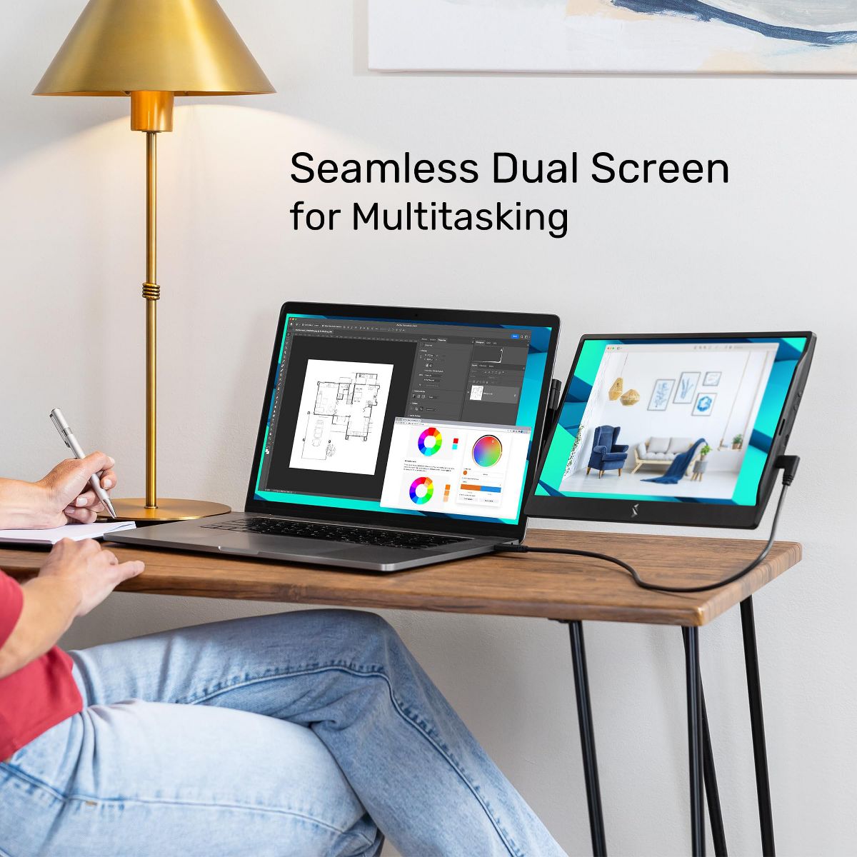 SideTrak Swivel 14" Attachable Portable Monitor (Light Silver) | Instantly double your laptop screen workspace with this game-changing attachable dual monitor technology! SideTrak Swivel portable monitor for laptops is a 14" FHD TFT second screen that magnetically attaches to the back of your laptop with a metal plate so you can effortlessly work anywhere with two screens. Designed to effortlessly match silver laptops, it is the perfect laptop companion whether you are working from home, in the office, or on-the-go.