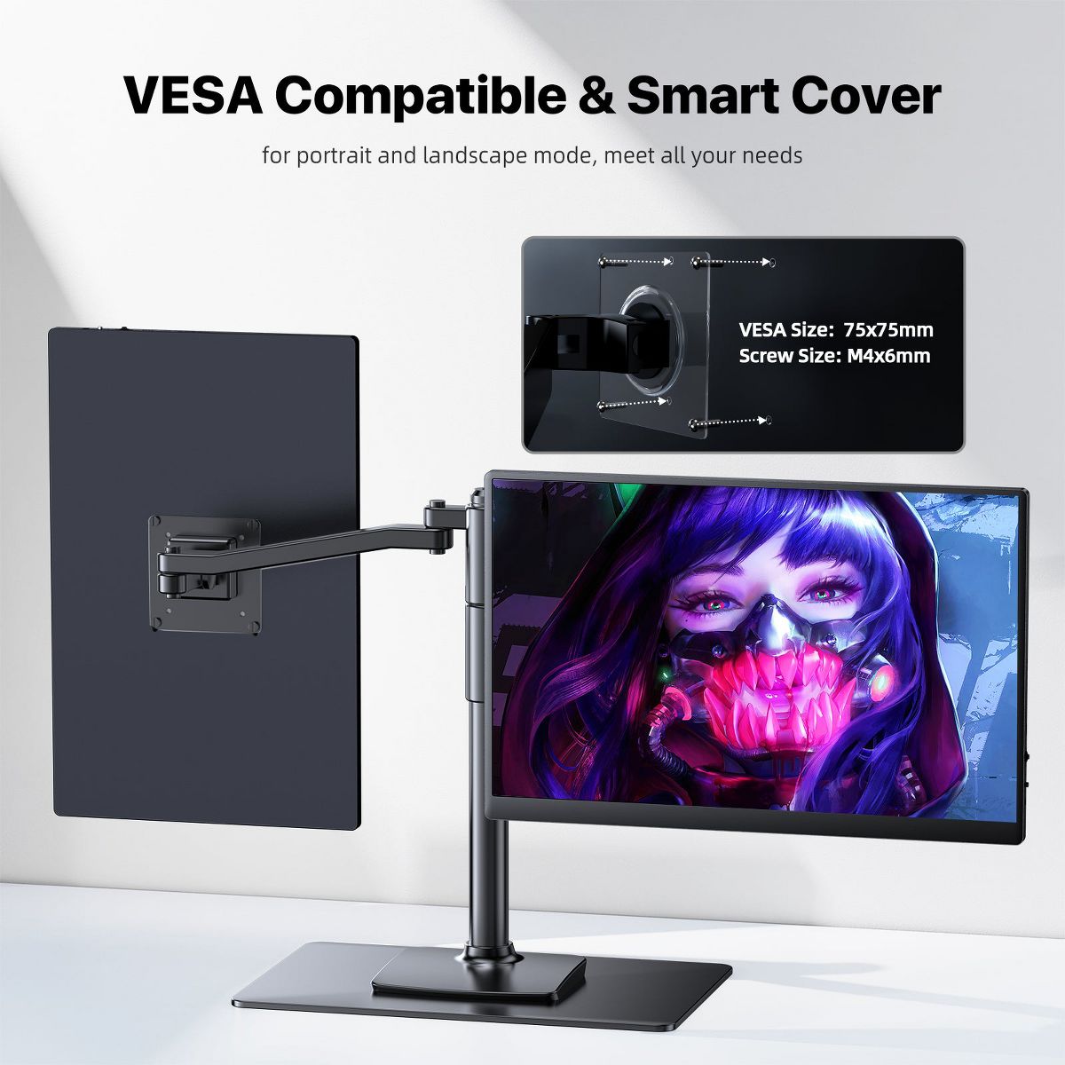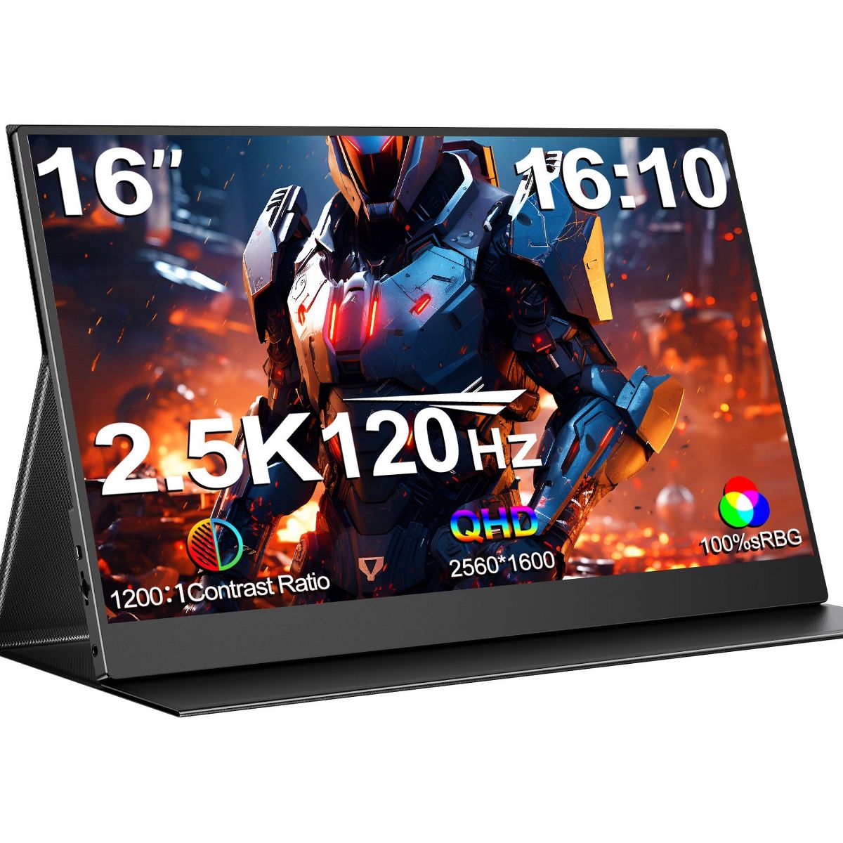 UPERFECT 16" 2.5K Portable Monitor 120Hz USB-C Gaming Display, IPS HDR, FreeSync, Smart Cover, HDMI, w/VESA & Speakers, For Laptop/PC/Console/Phone