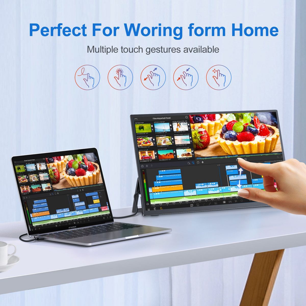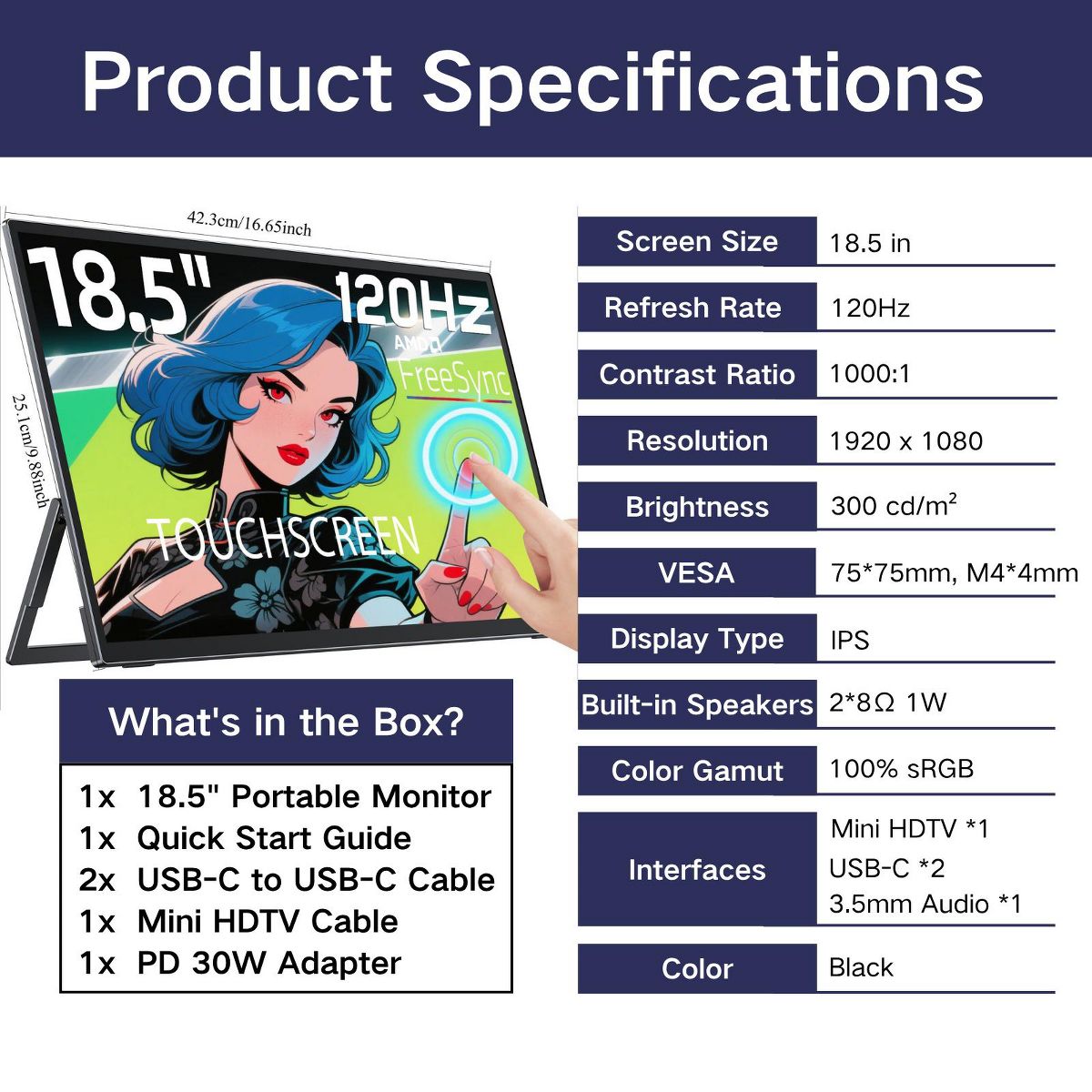 UPERFECT 18.5" 120Hz Touchscreen Portable Monitor, FHD IPS, 10-Point Touch, USB-C/HDMI, VESA, Built-in Stand&Speakers, Eye Care, for Laptop/PC/Console