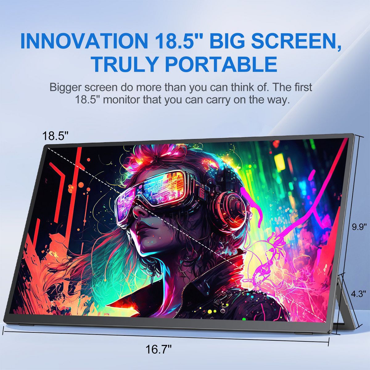The UPERFECT 18.5" Touchscreen Portable Monitor combines a vivid Full HD IPS display, 100% sRGB color accuracy, and a 120Hz refresh rate for smooth, immersive visuals. Whether you're editing, gaming, or presenting, the 10-point touch screen and 180° adjustable stand offer precision and flexibility in any environment. Housed in a durable aluminum body with dual USB-C ports, HDMI, and built-in speakers, it’s ready for any workflow—wherever you go.