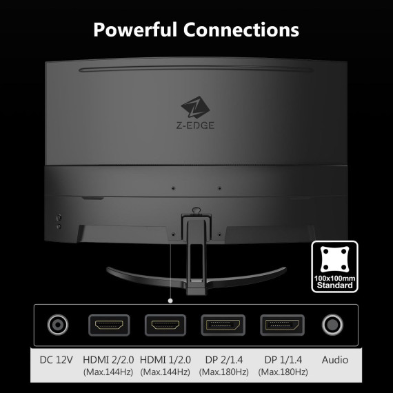 Z-EDGE UG32 32" 180Hz 2K Curved Gaming Monitor, QHD(2560x1440), Frameless LED Gaming Monitor, AMD Freesync, Display Port & HDMI